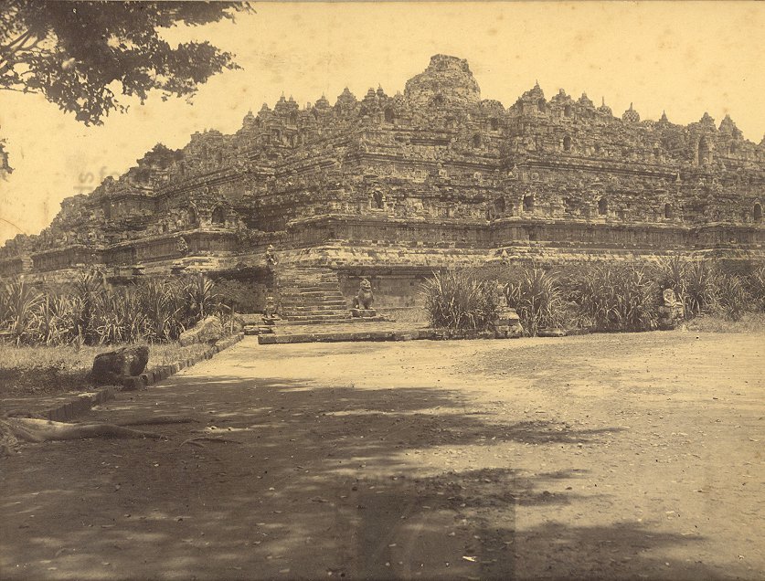Gezicht op de Borobudur, Java, Indonesië (1880-1900)