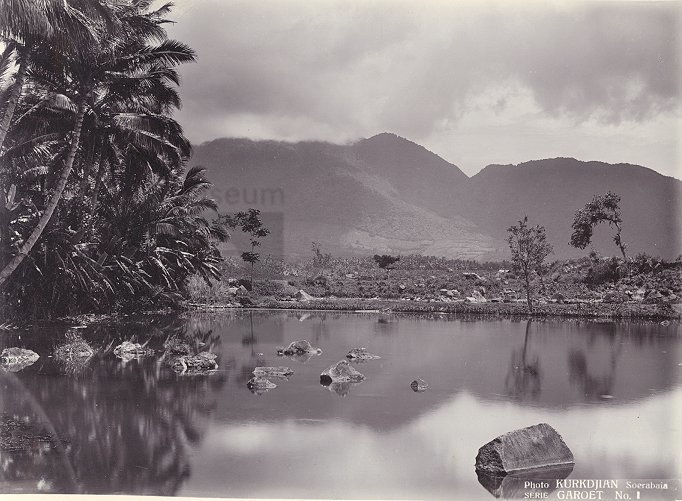 Berglandschap met meer, Garut, Java, Indonesië (ca.1...
