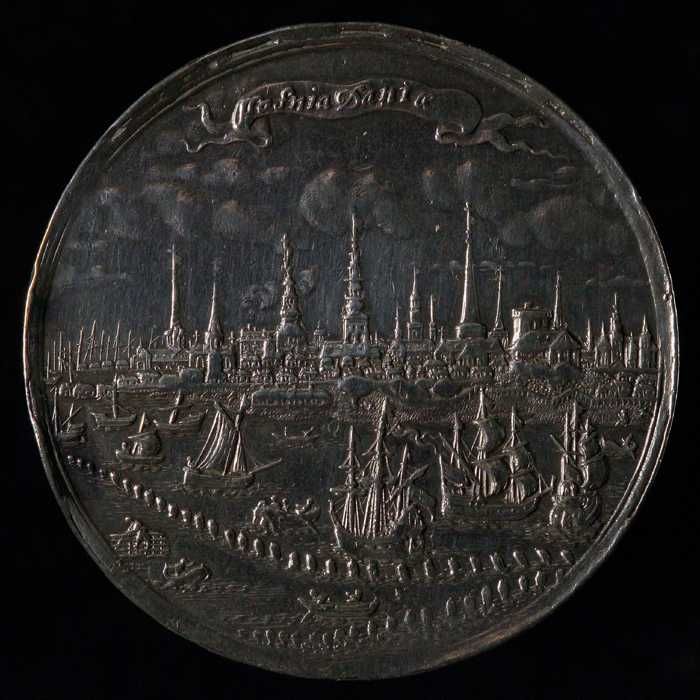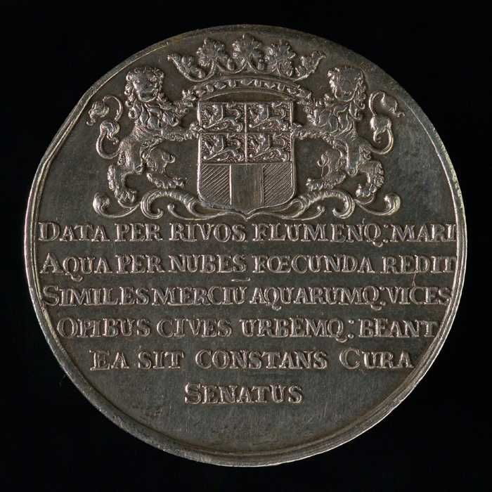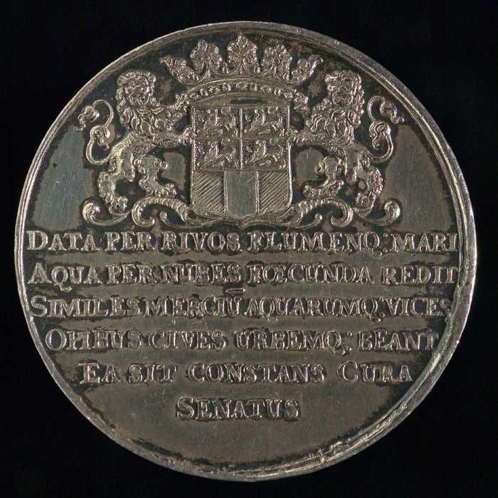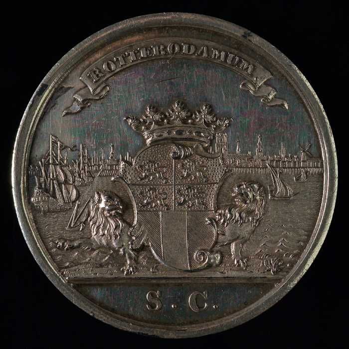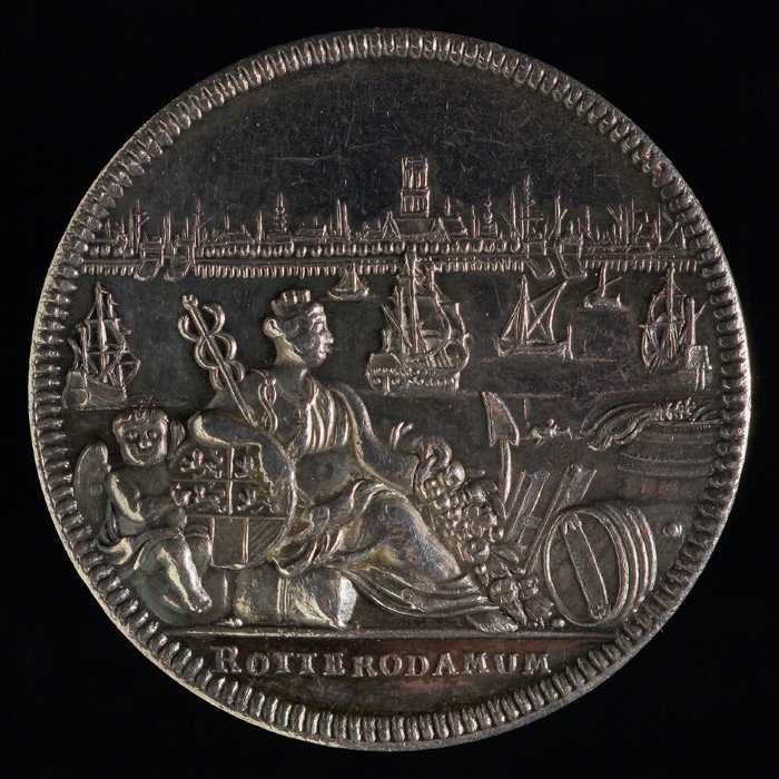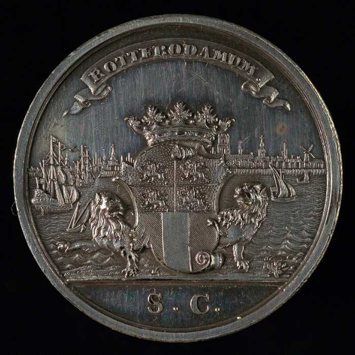 Vroedschapspenning met Maasgod en stadswapen Rotterdam