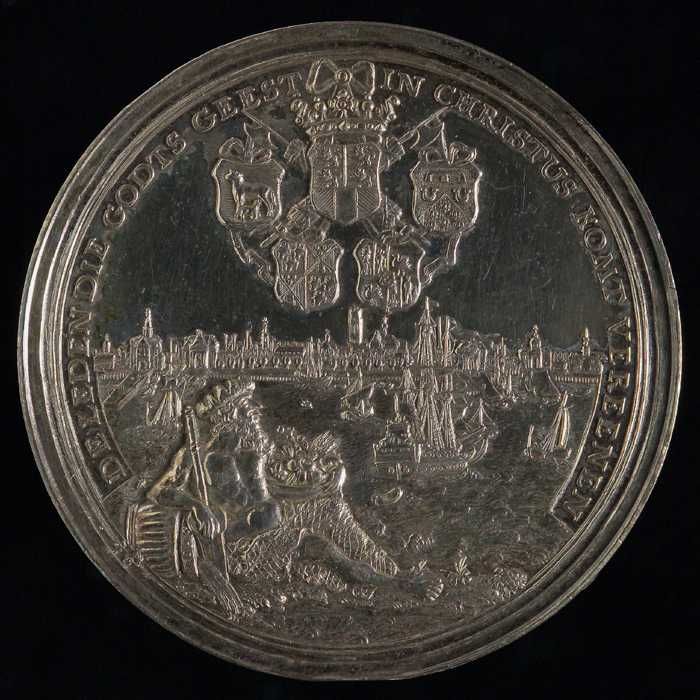 Vroedschapspenning met stedenmaagd en stadswapen van...