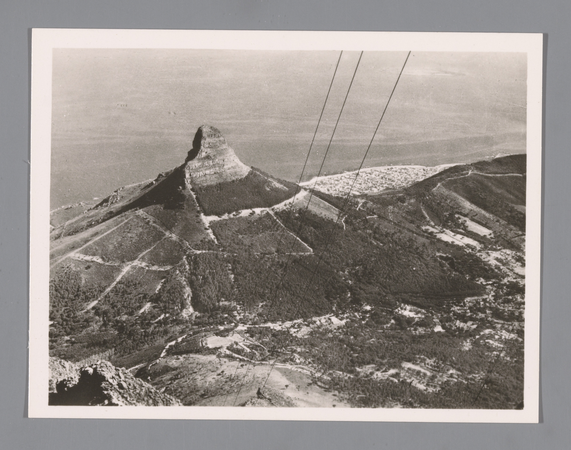 Gezicht op de Leeukop vanaf de Tafelberg in Kaapstad