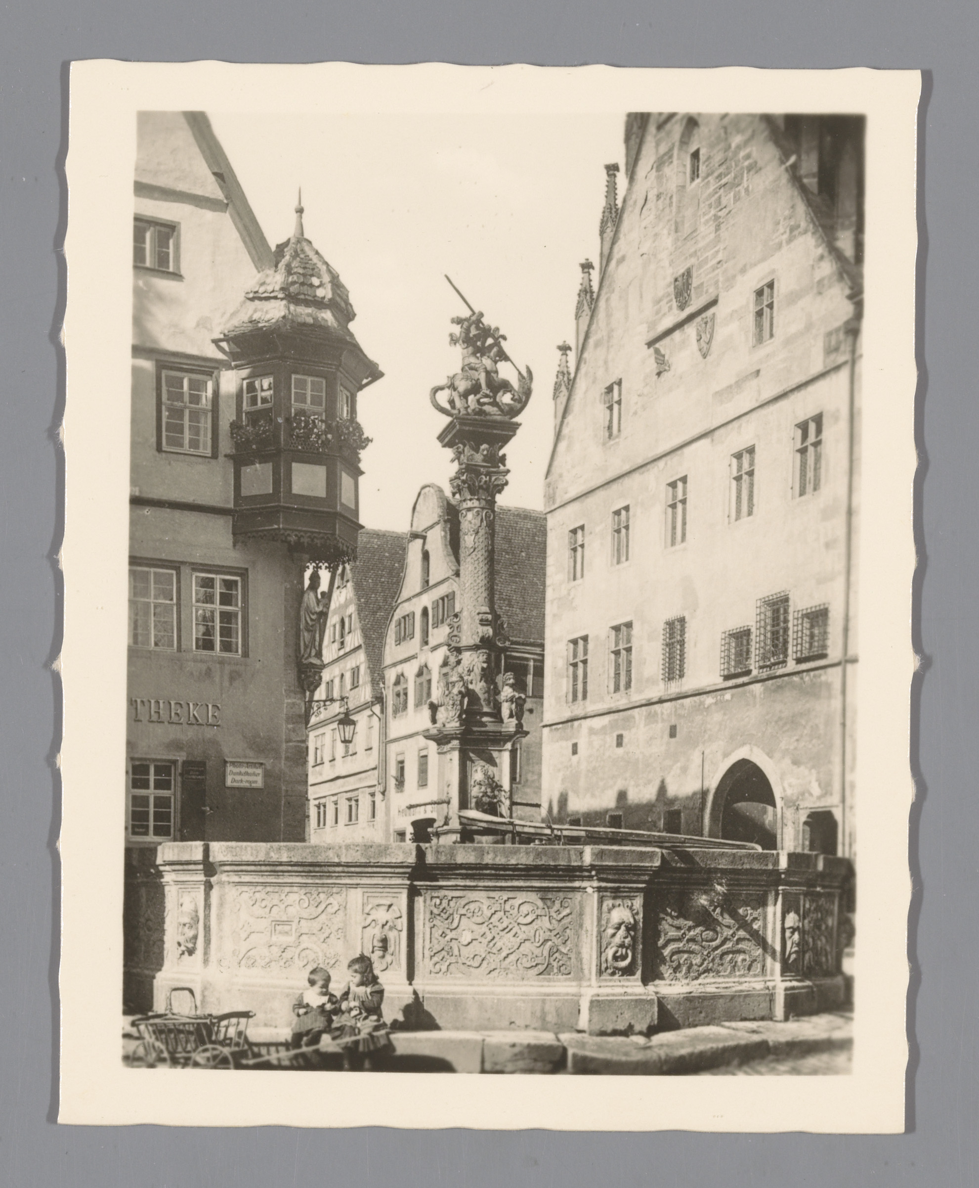 Gezicht op de Georgsbrunnen in Rothenburg ob der Tauber