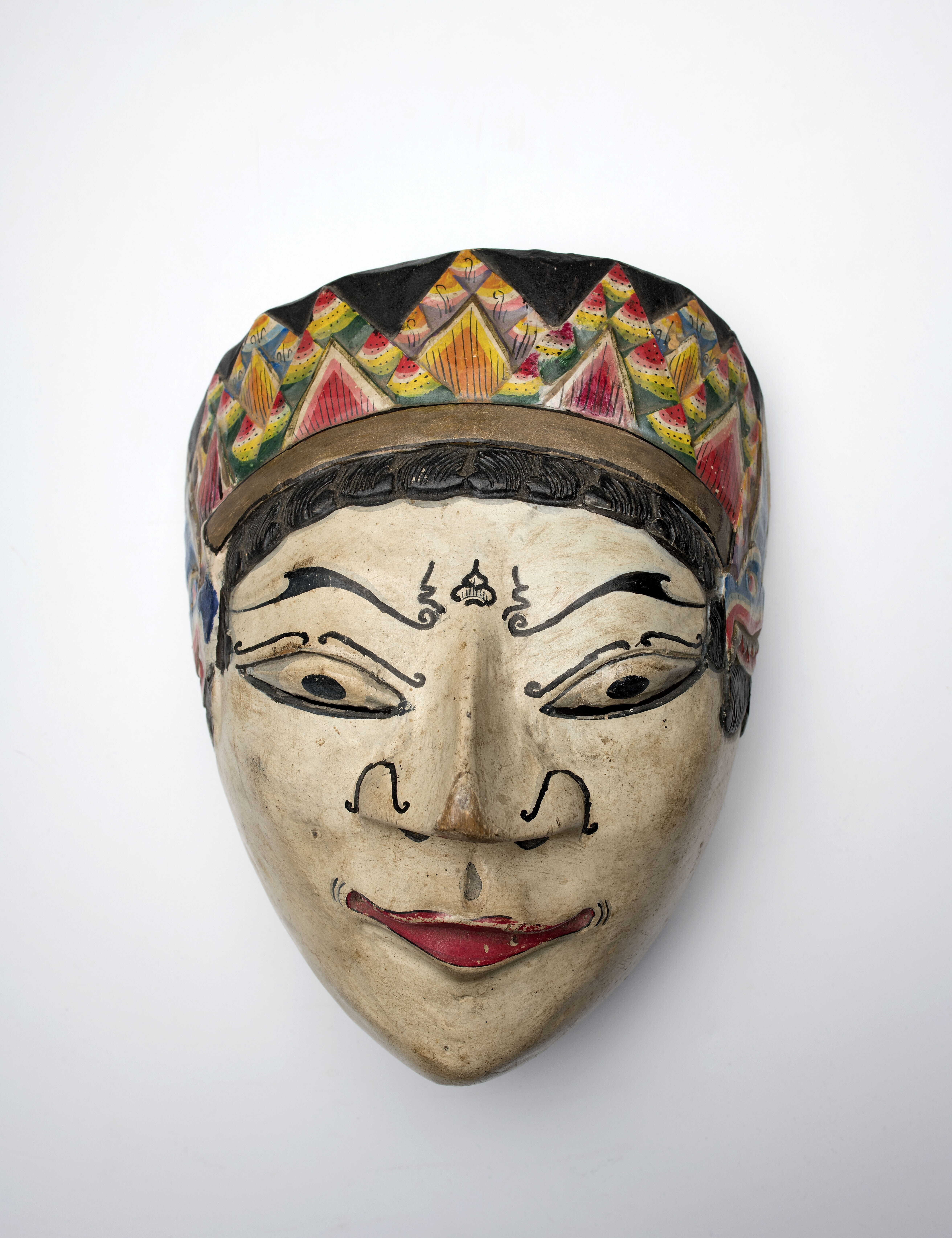 Ovalen messing bord met de wajangfiguren Raja Sajada...