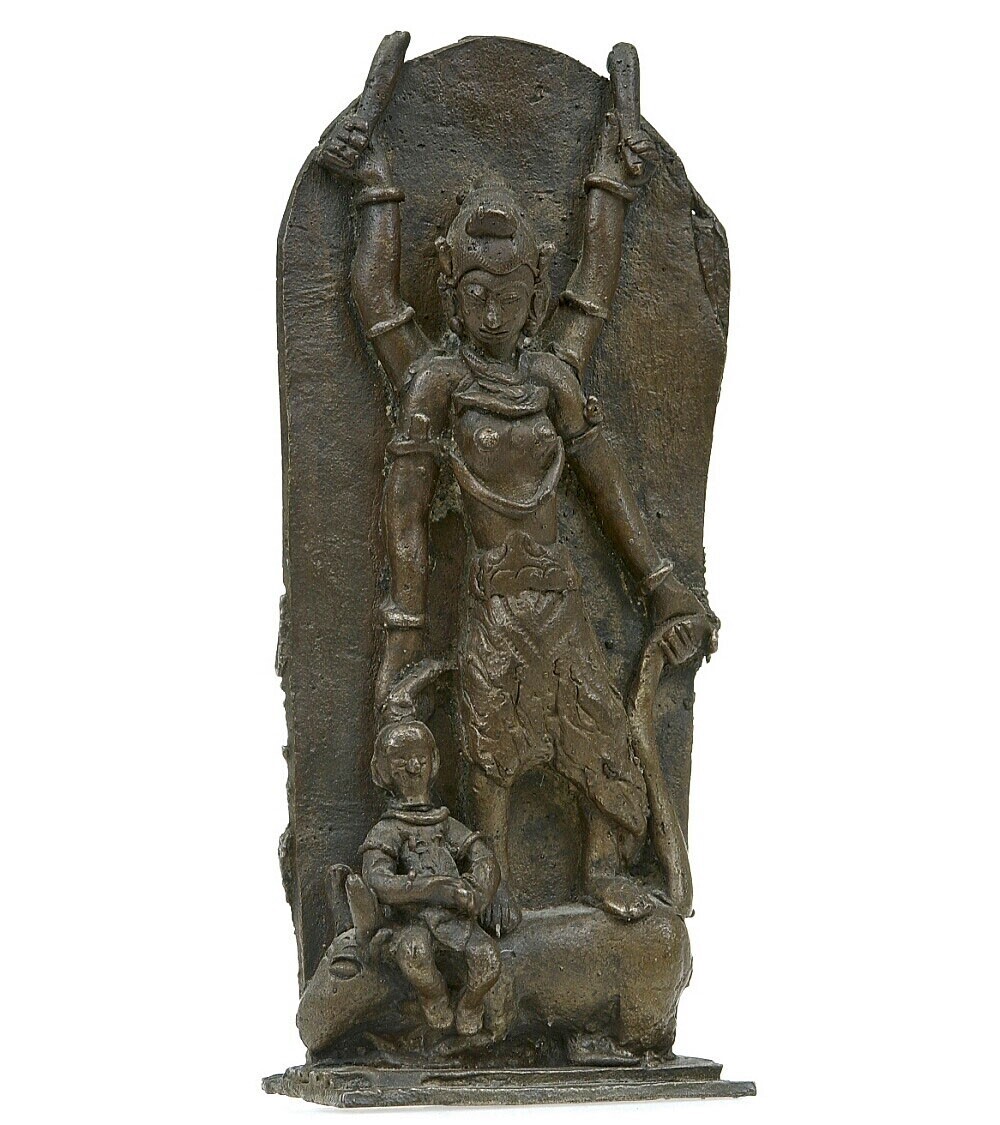 Beeldje boerse kunst voorstellende Durga en de demon...