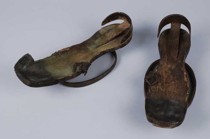 Leren enkelhoge herenschoenen met houten zool en ges...