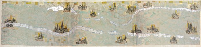 Diorama Nieuwe Waterweg: wandschildering met overzic...