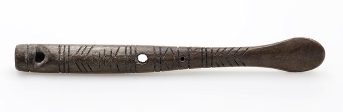 Benen bijtstift of rammelaar, versierd, spatelvormig...