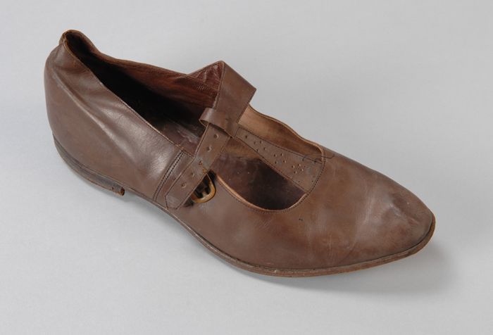 Bruine leren kinderschoentjes met enkelbandje met kn...