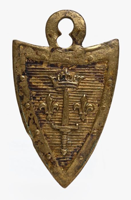Hoedenstandaard, twee dunne pionvormen van donker ho...
