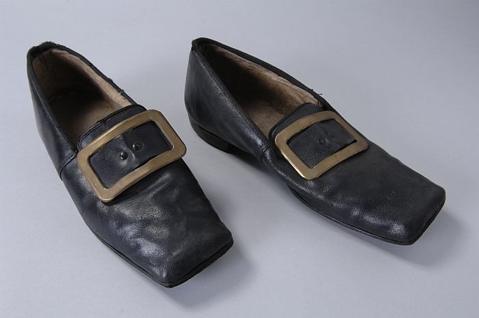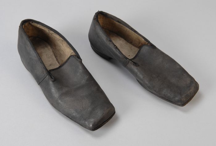 Zwart geverfde houten kinderklompen met hoge wreef e...