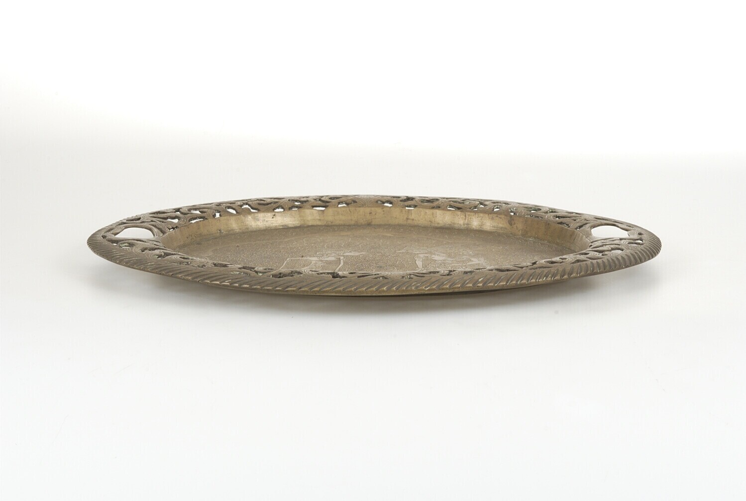 Ovalen messing bord met de wajangfiguren Raja Sajada...