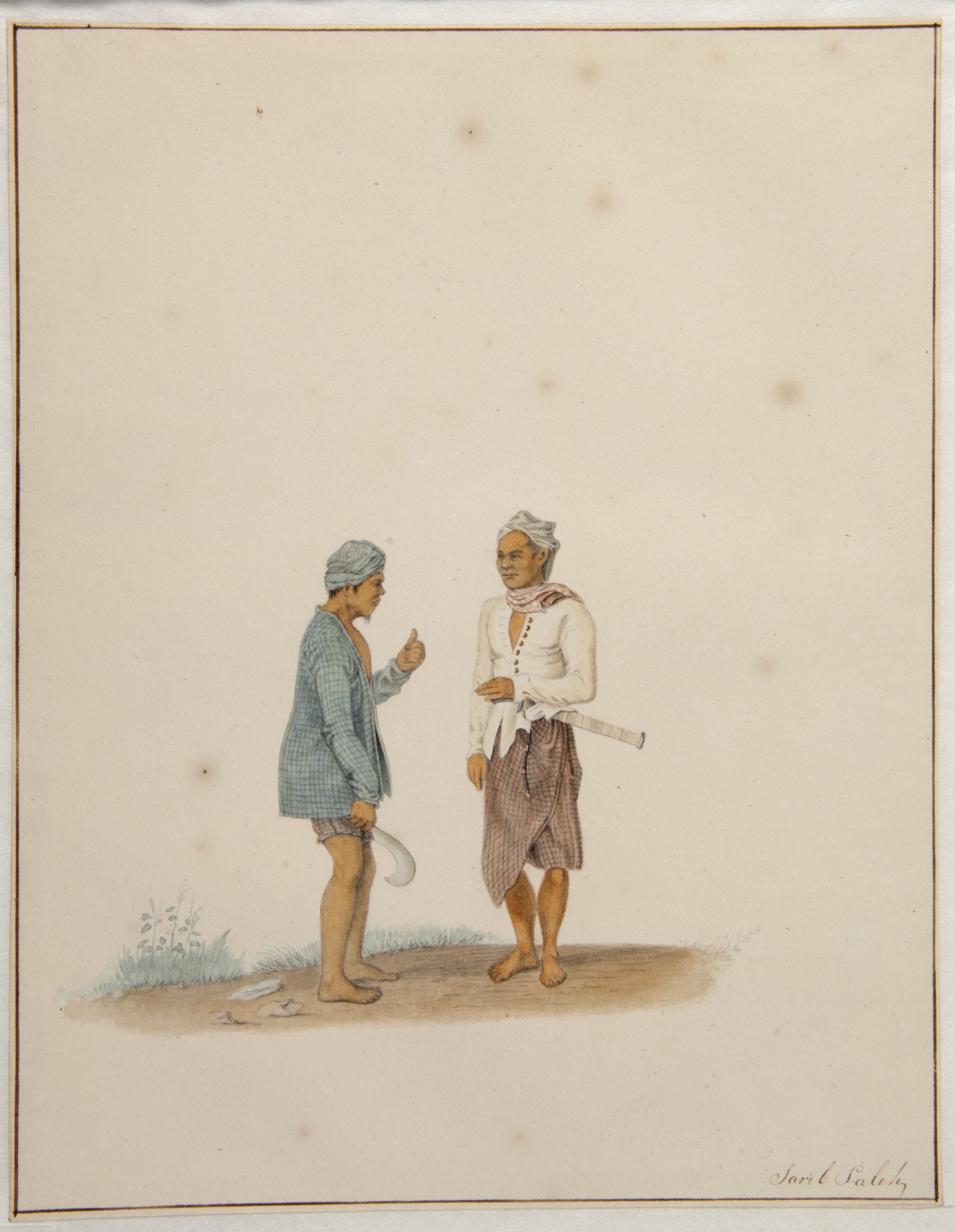 Aquarel by Raden Saleh depicting a man with a sickle...