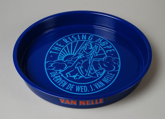 Rond, paars dienblad Van Nelle "THE RISING HOPE"