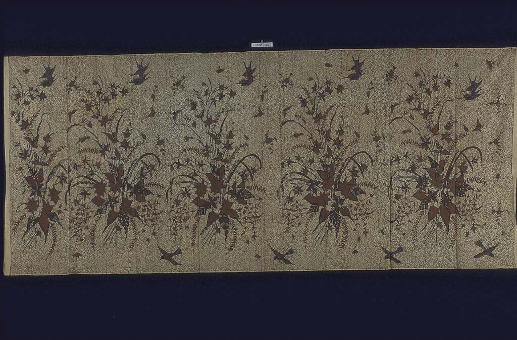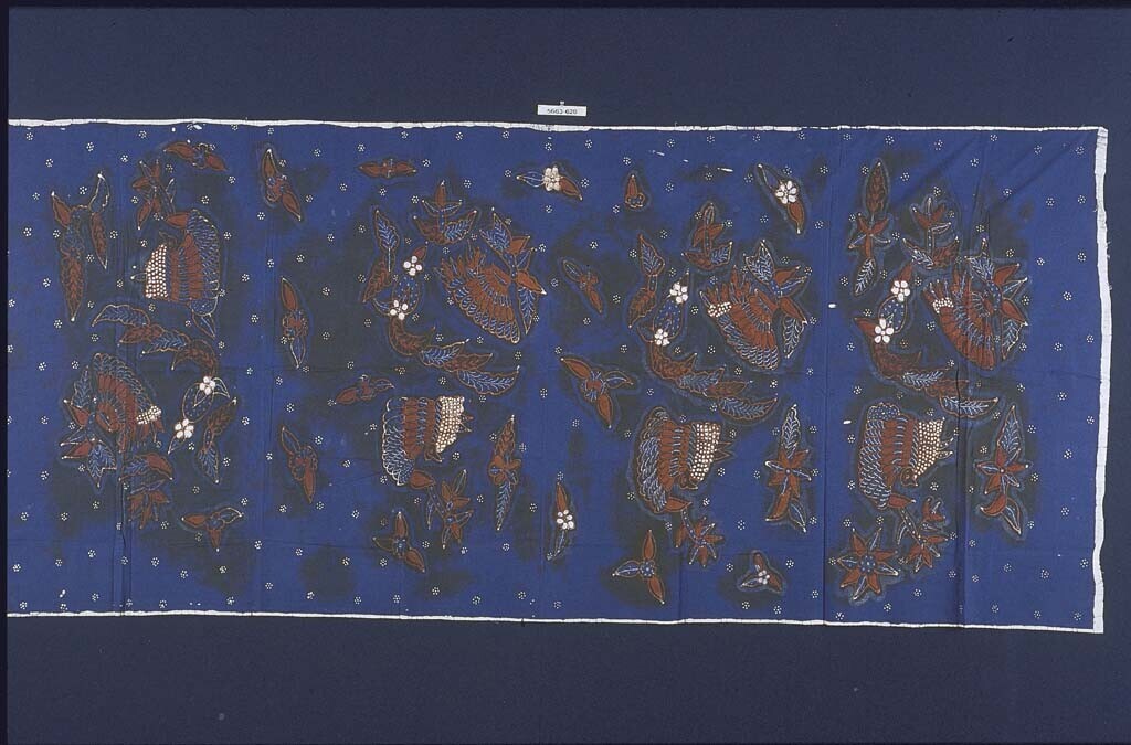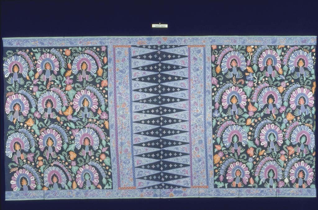 Wikkelrok met bergen, huizen, vogelmotieven en pauwen