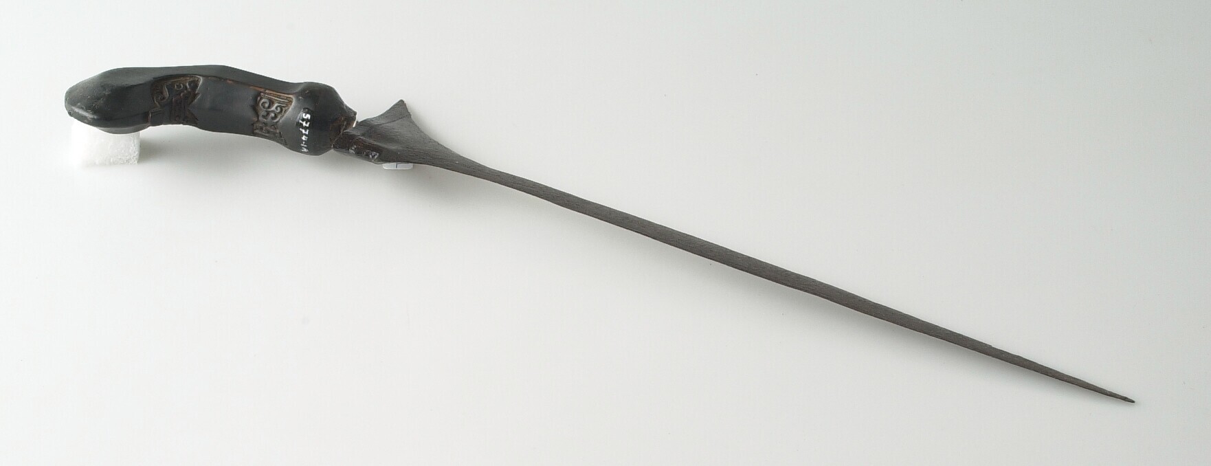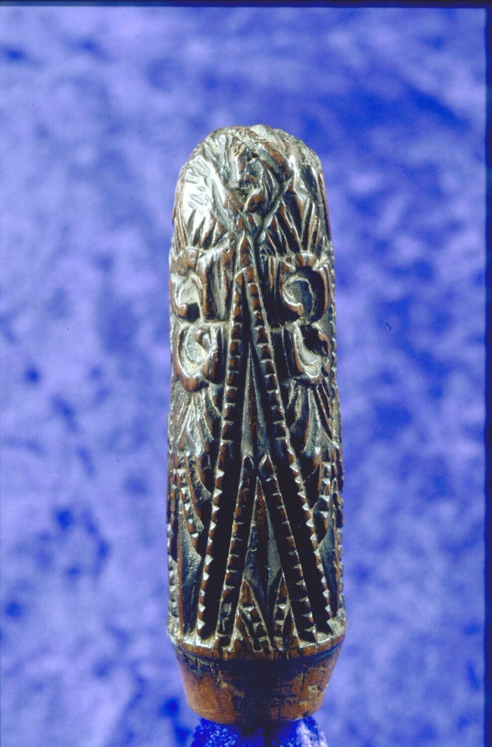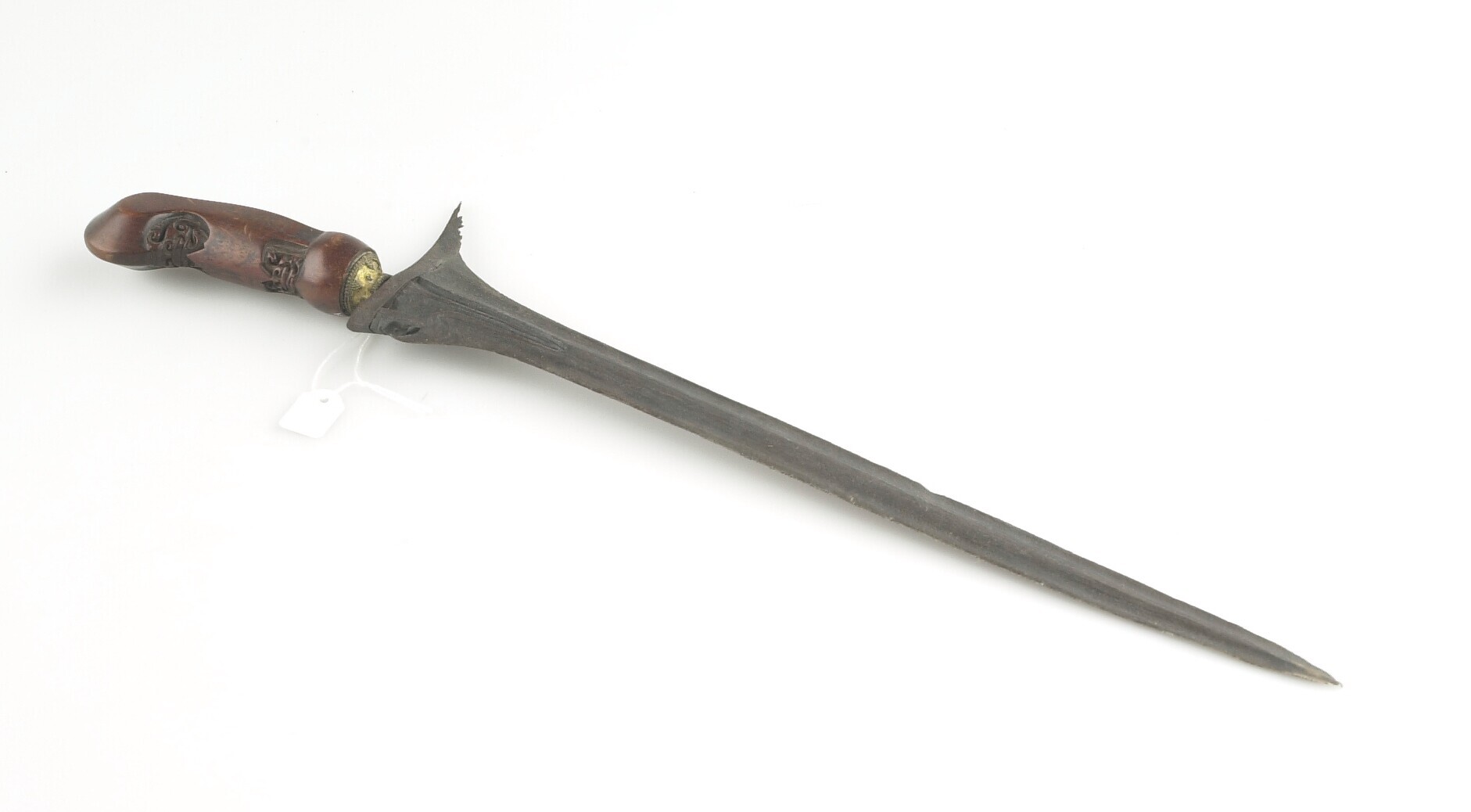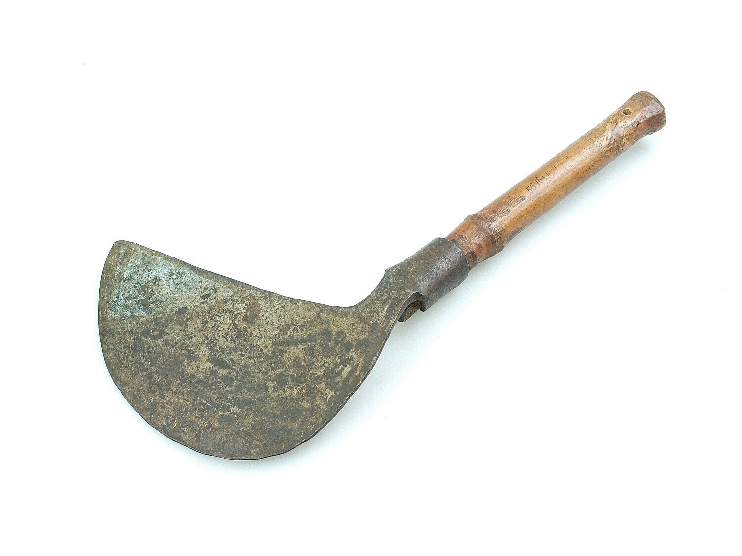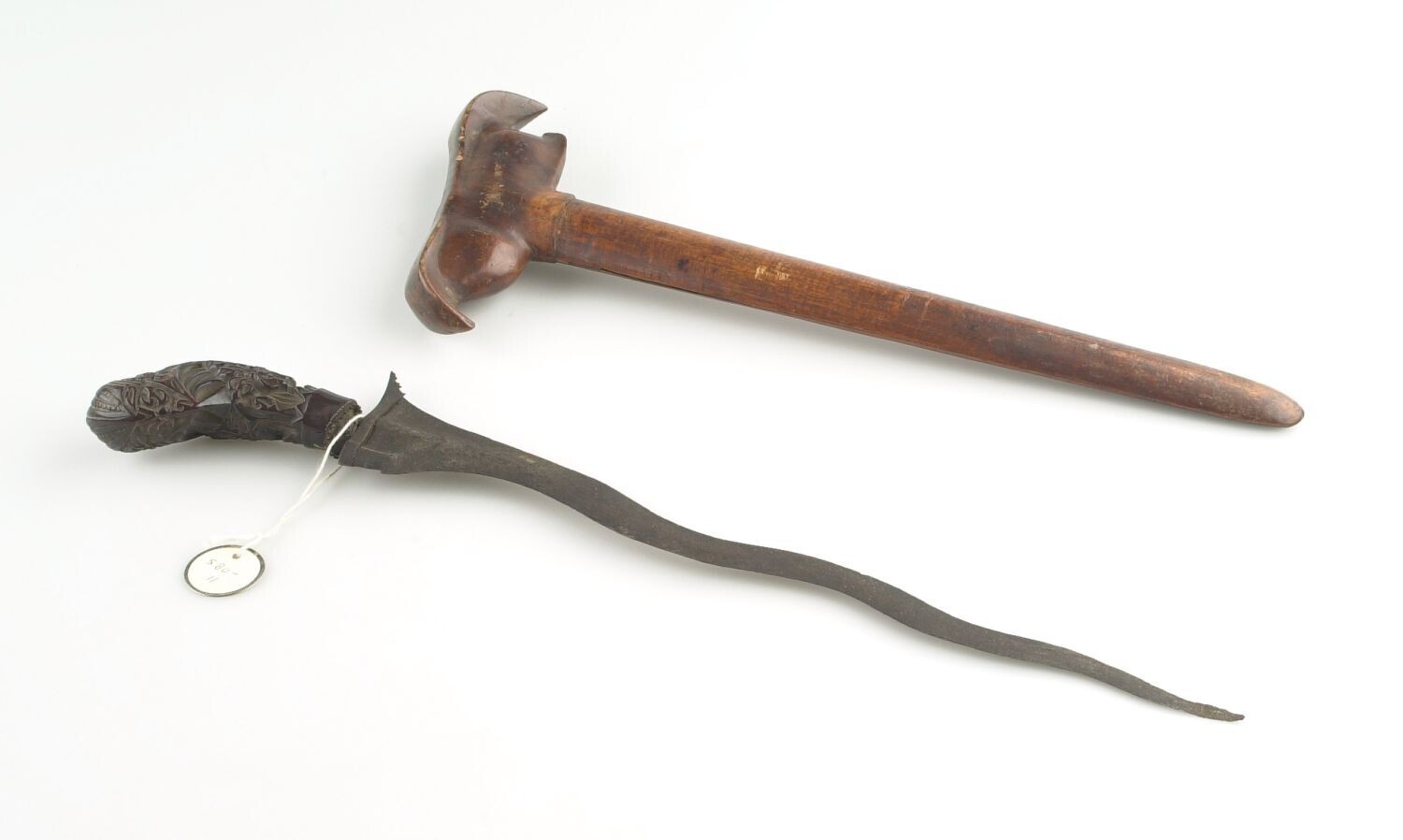 Kapmes in houten schede, voorzien van twee gevlochte...