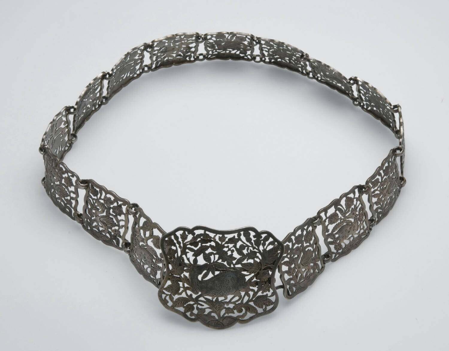 Gipsafgietsel vrouwenkop met zware versierselen en h...