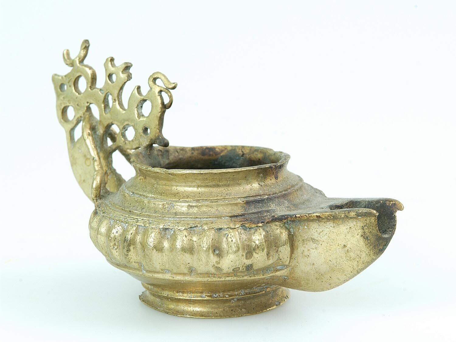 Onderdeel van geelkoperen tweepits olielamp