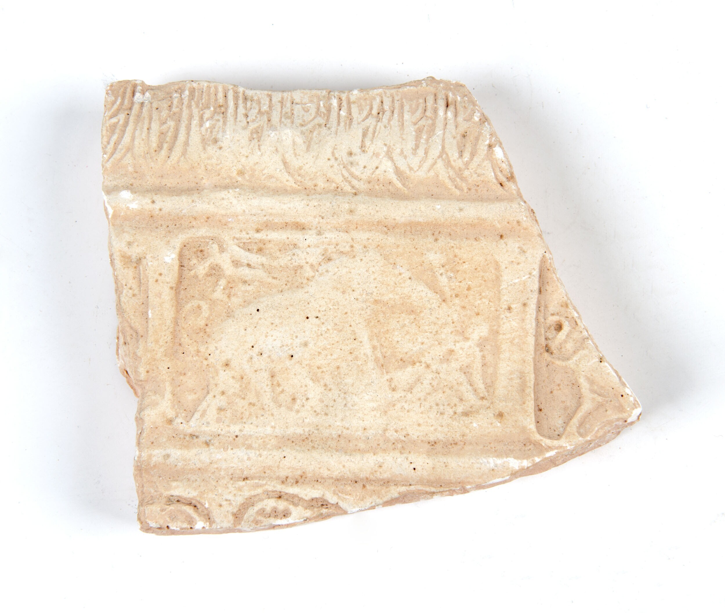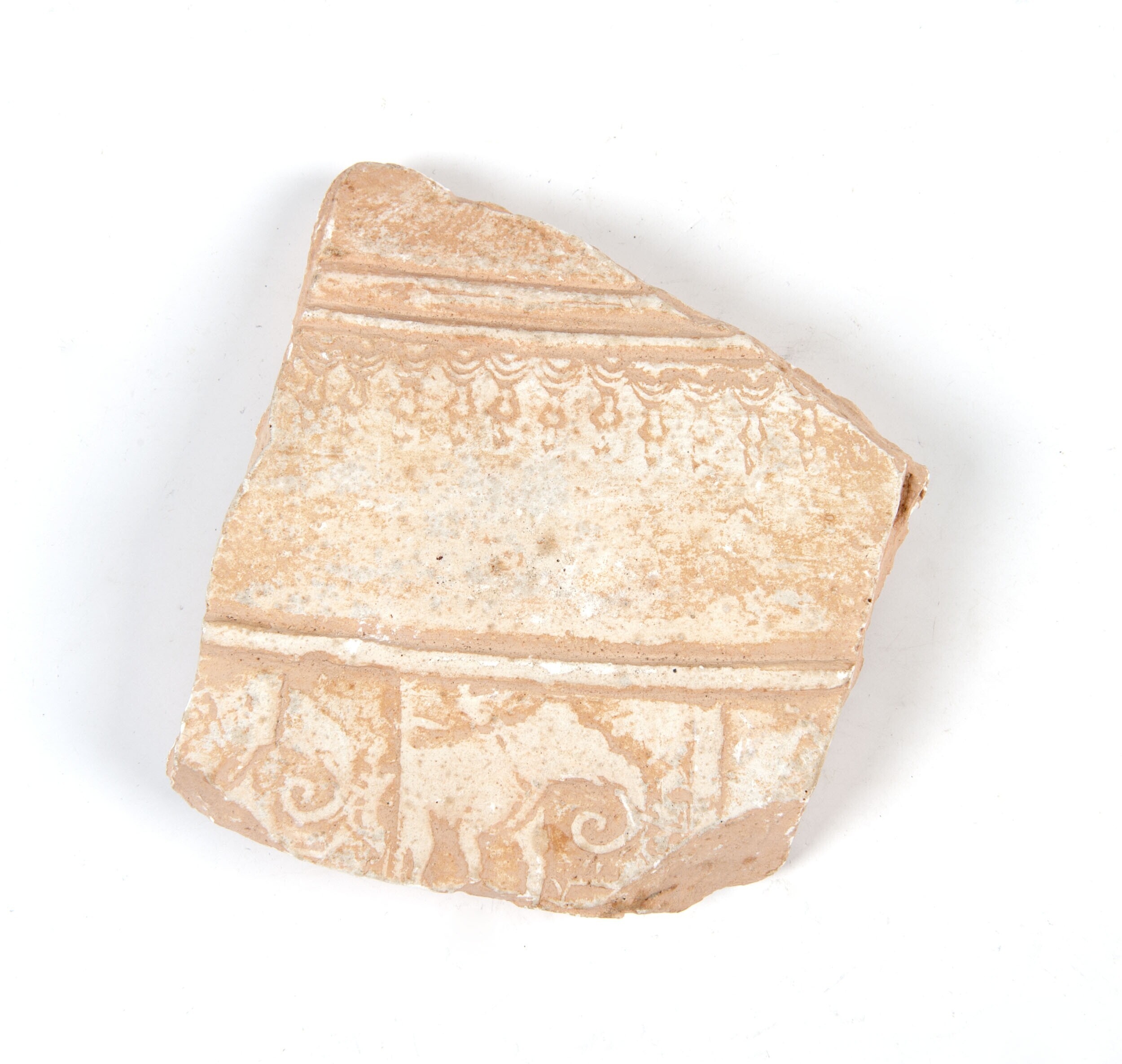 Gipsafgietsel Potscherf met voorstelling olifantenjacht