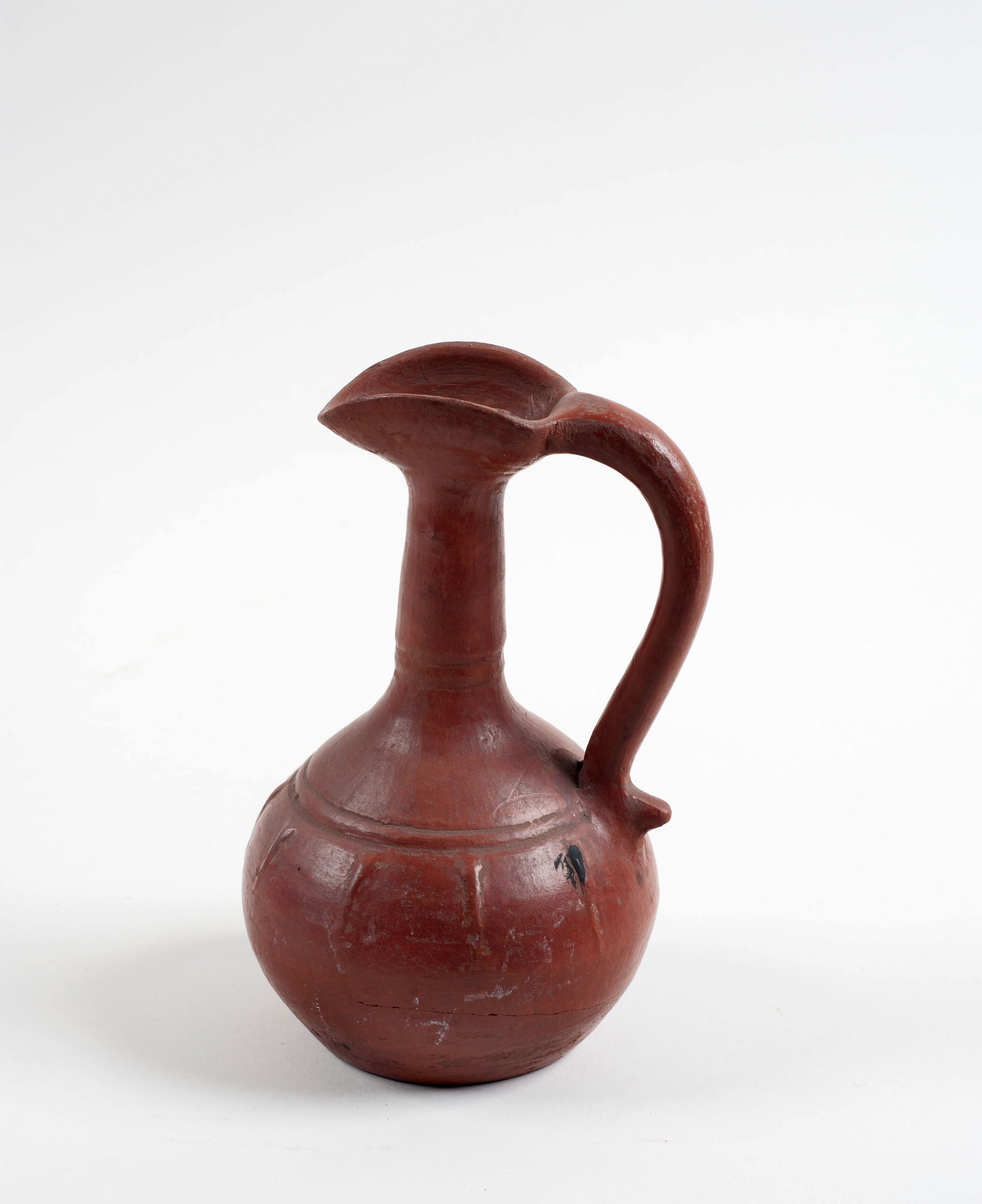 Aardewerken schenkkan in de vorm van een hoge melkkan