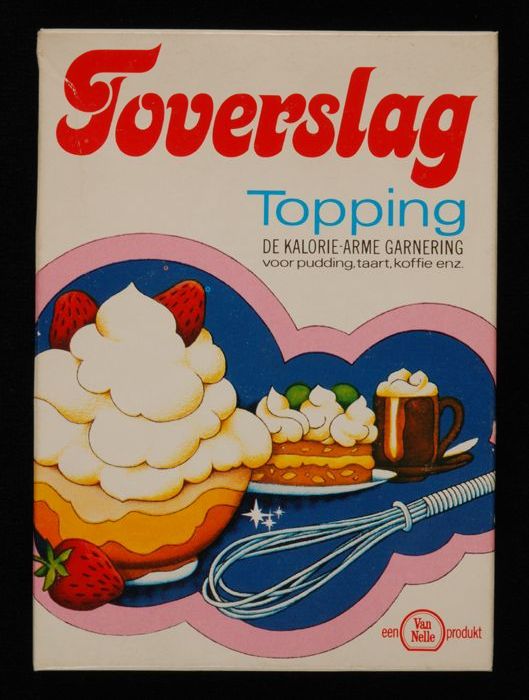 Wit, kartonnen pak "TOVERSLAG" topping, 31 gram