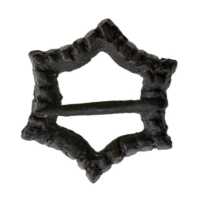 Kleine gesp met angel, zeshoekig, rondom kepen ter v...