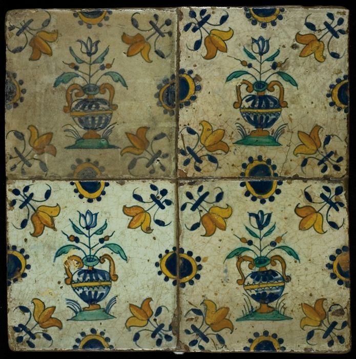 Bloemtegel, tegelveld van vier stuks, twee hoog bij ...