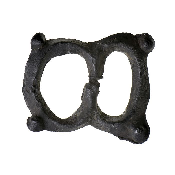 Tinnen beslag in de vorm van een gesp, twee ovale ga...