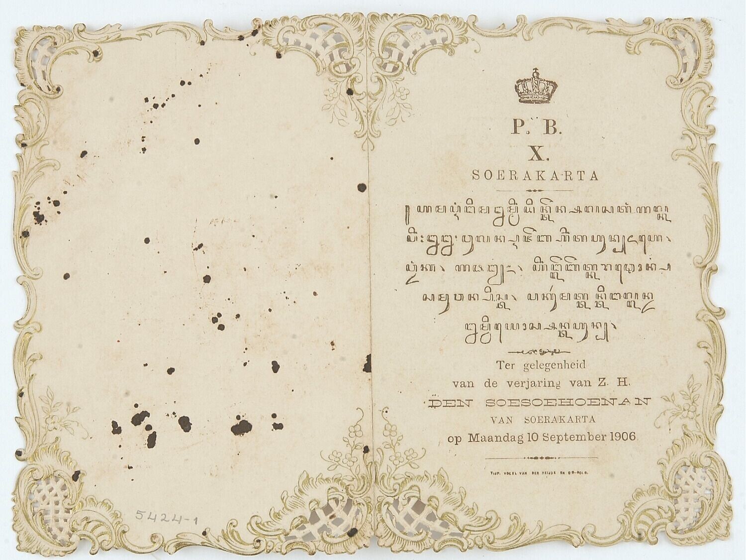 Menukaart met 10-gangen menu in het Frans en Javaans