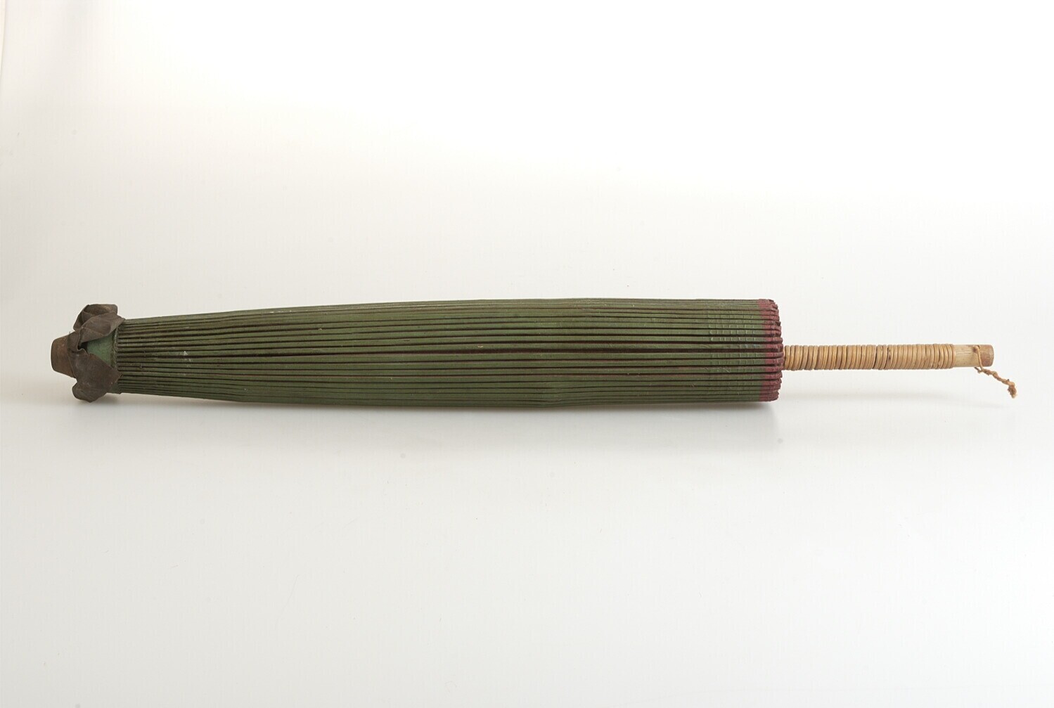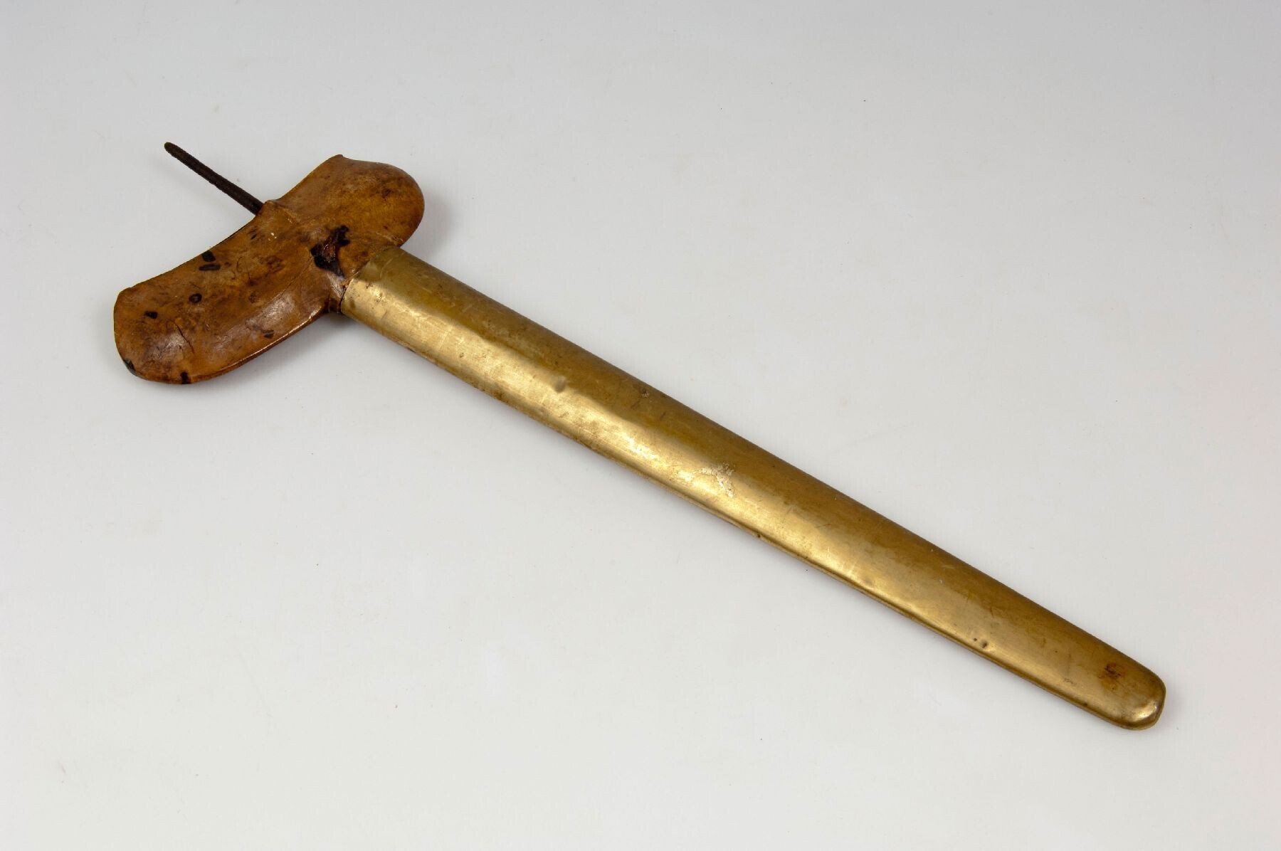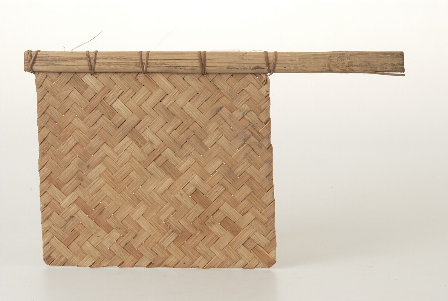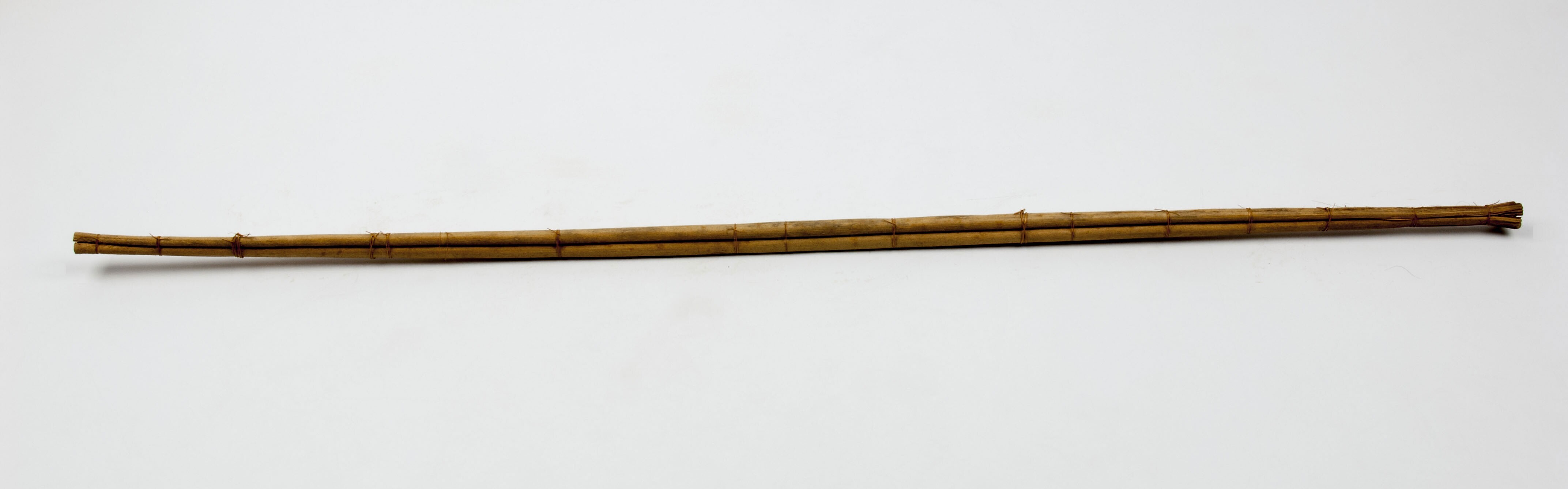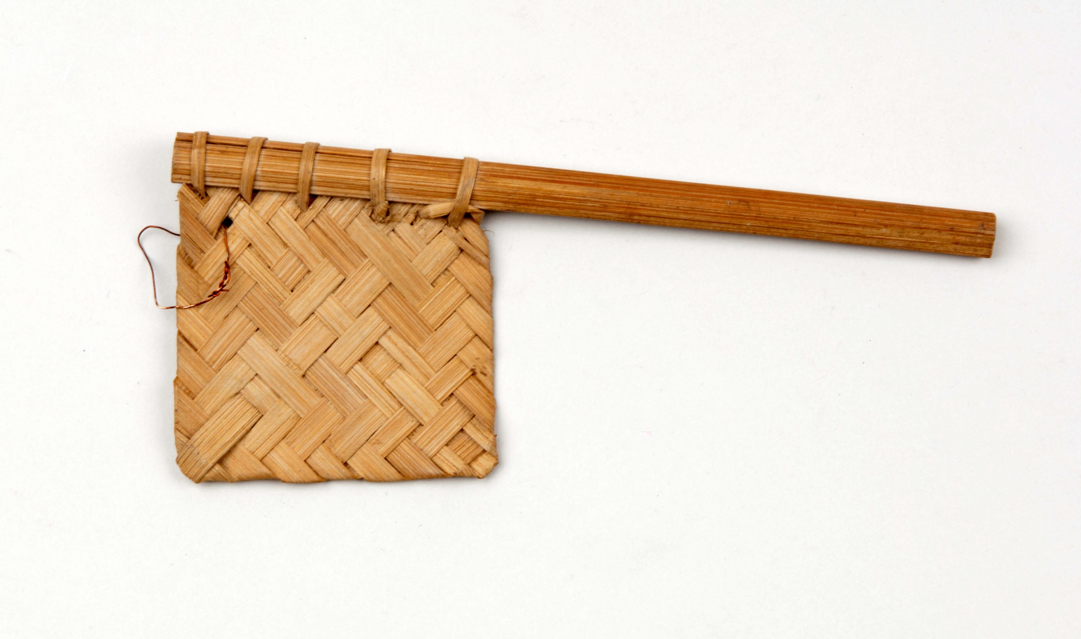 Bezem van palmblad en bamboe, omwikkeld met katoen