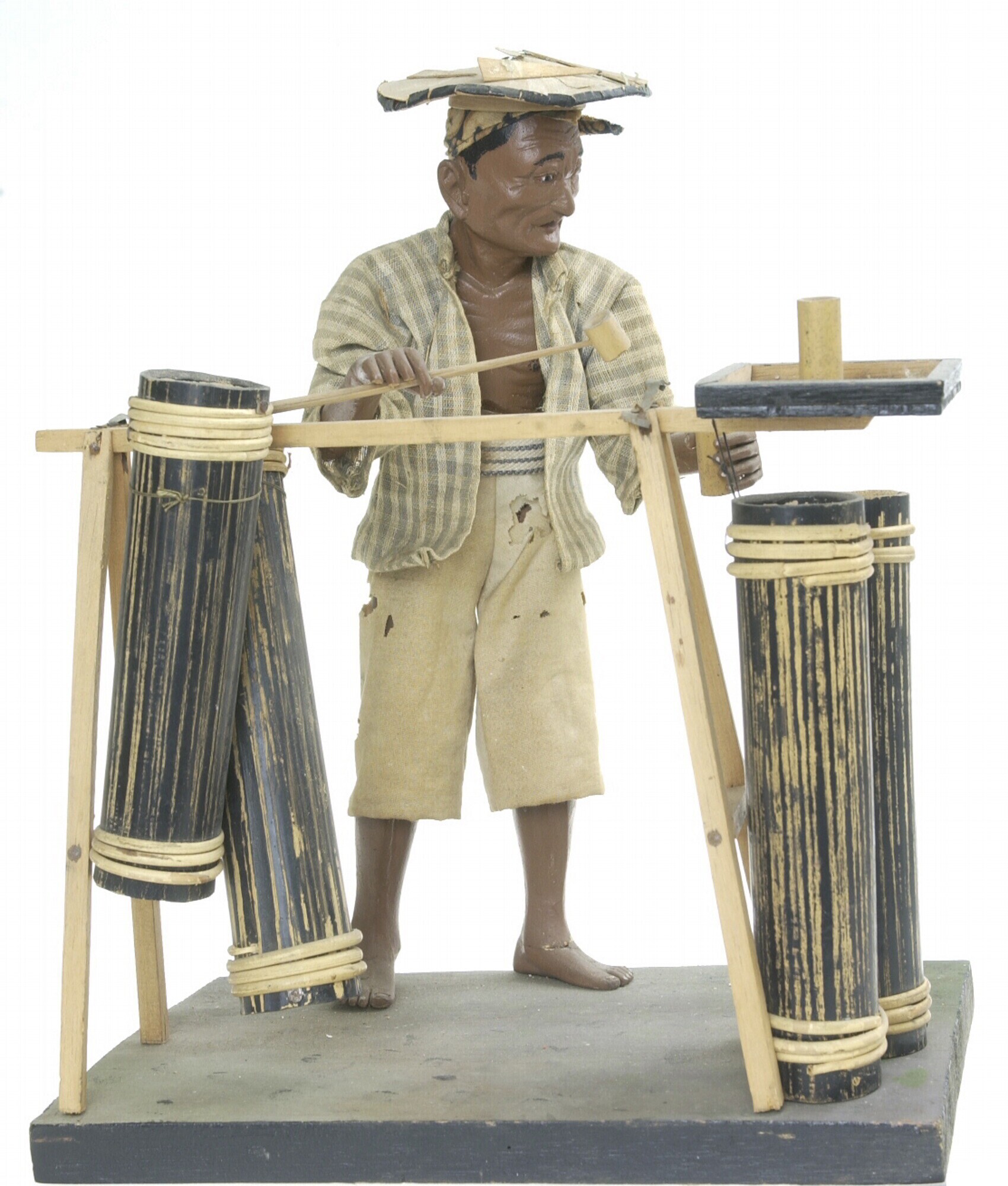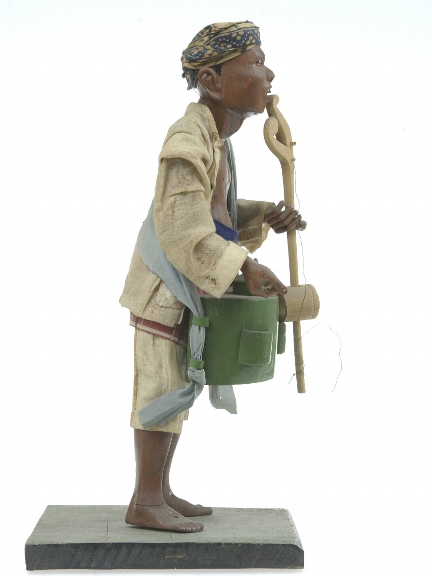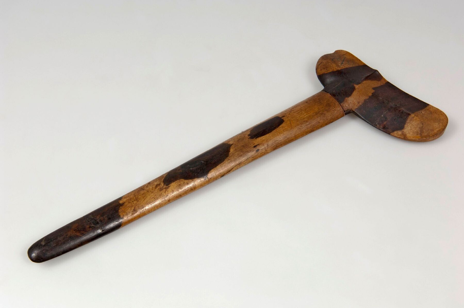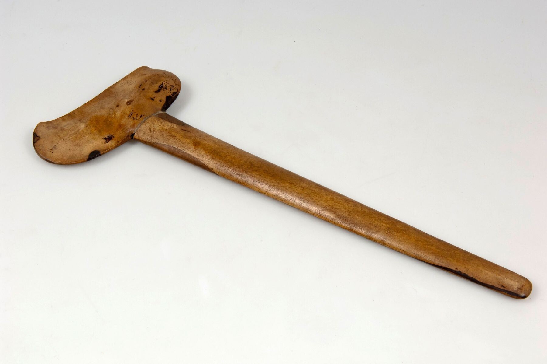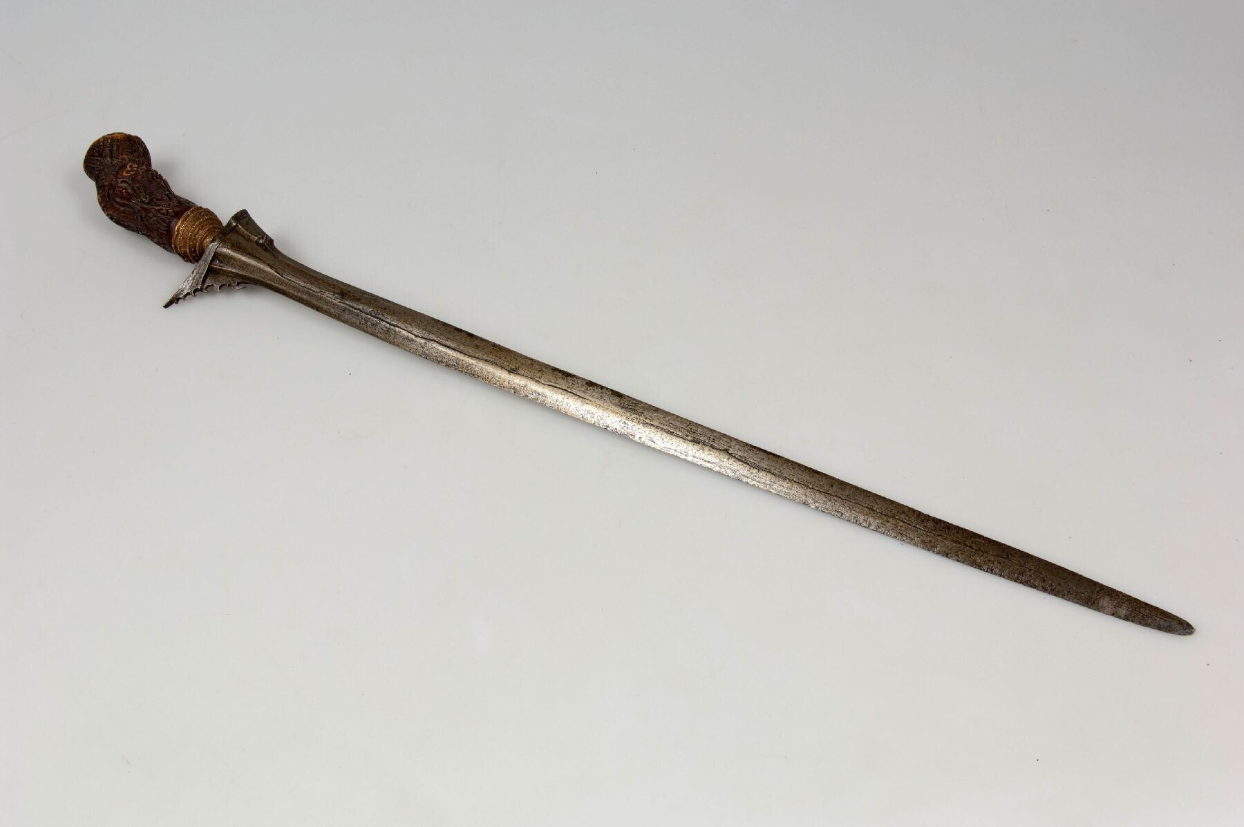 Bezem van palmblad en bamboe, omwikkeld met katoen