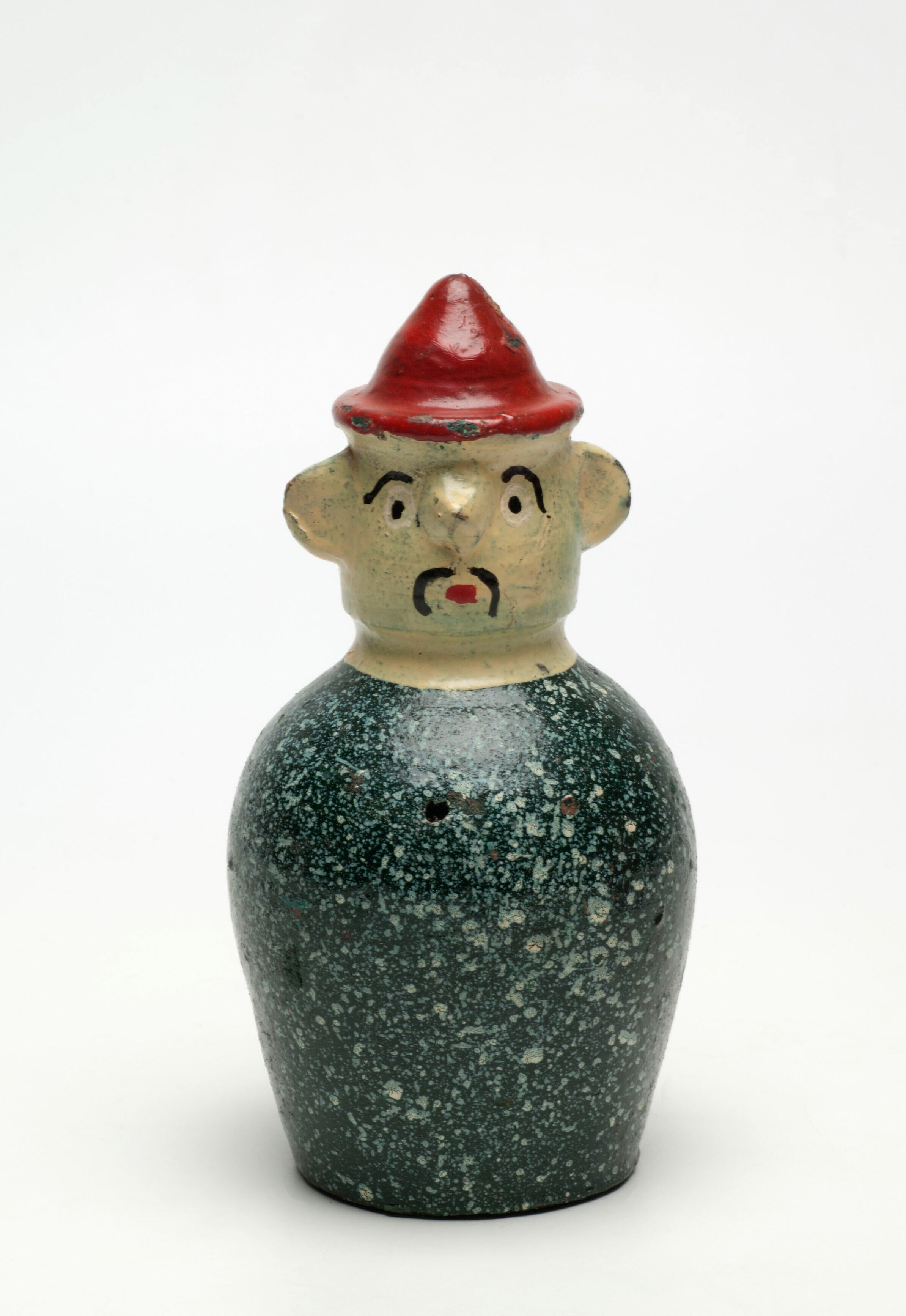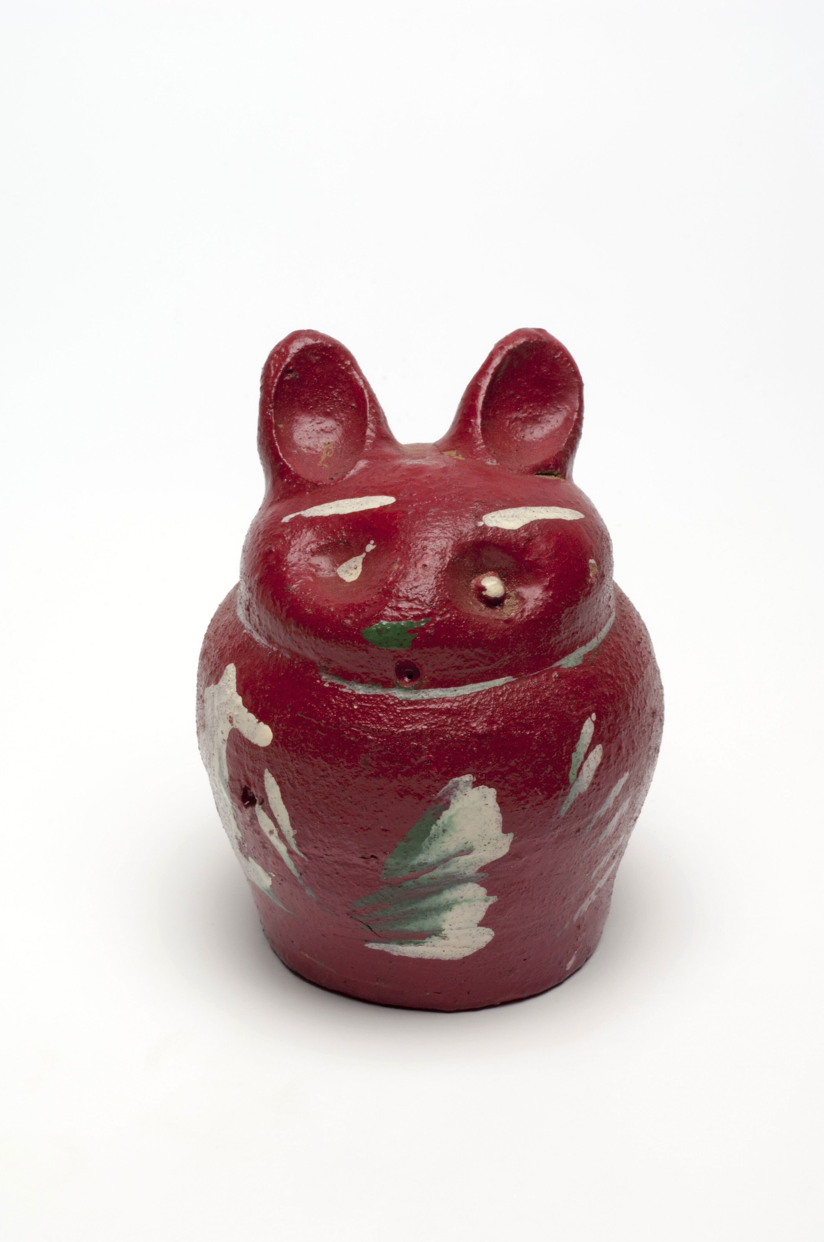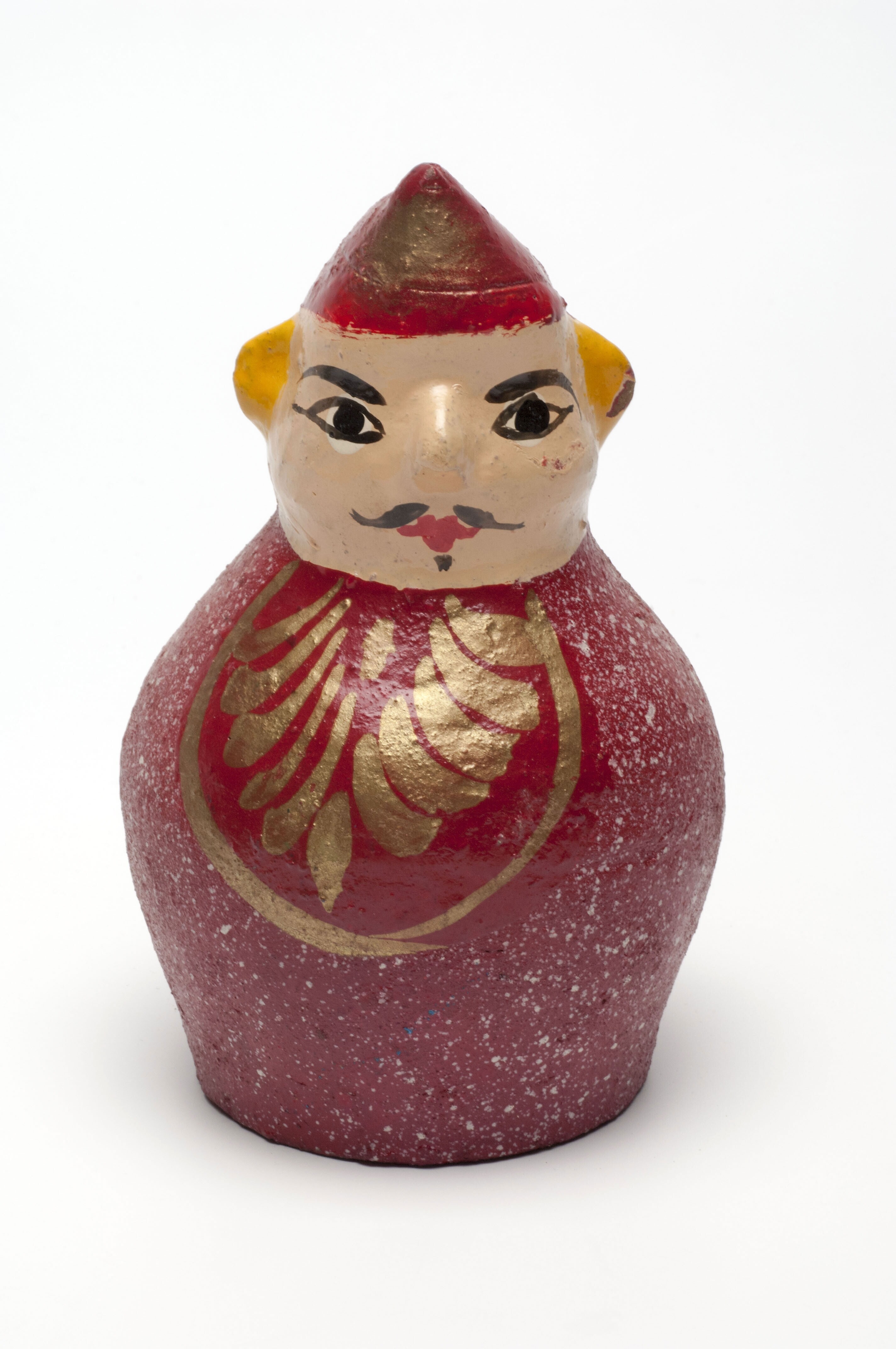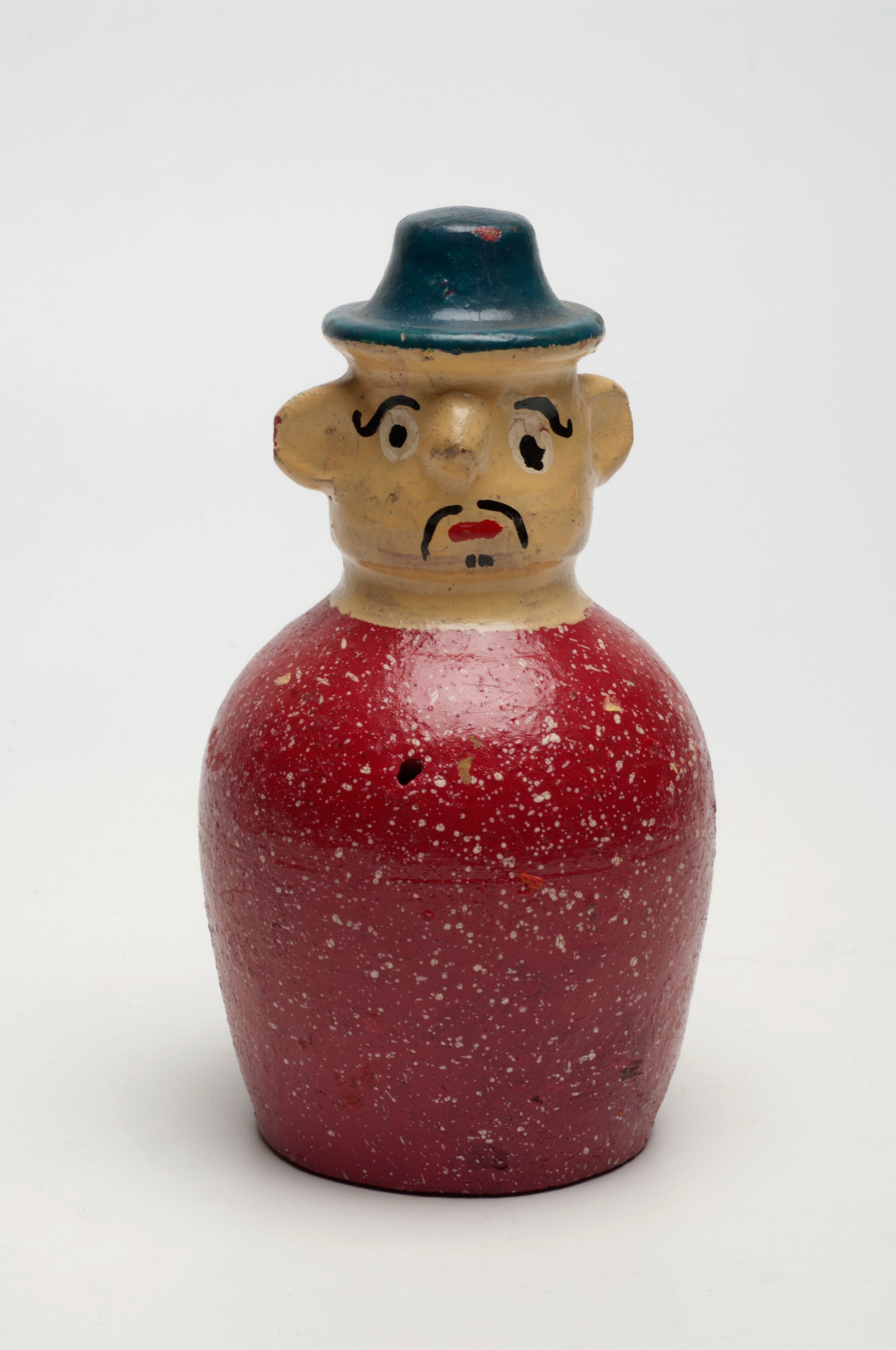 Aardewerken spaarpot in de vorm van een man met rood...