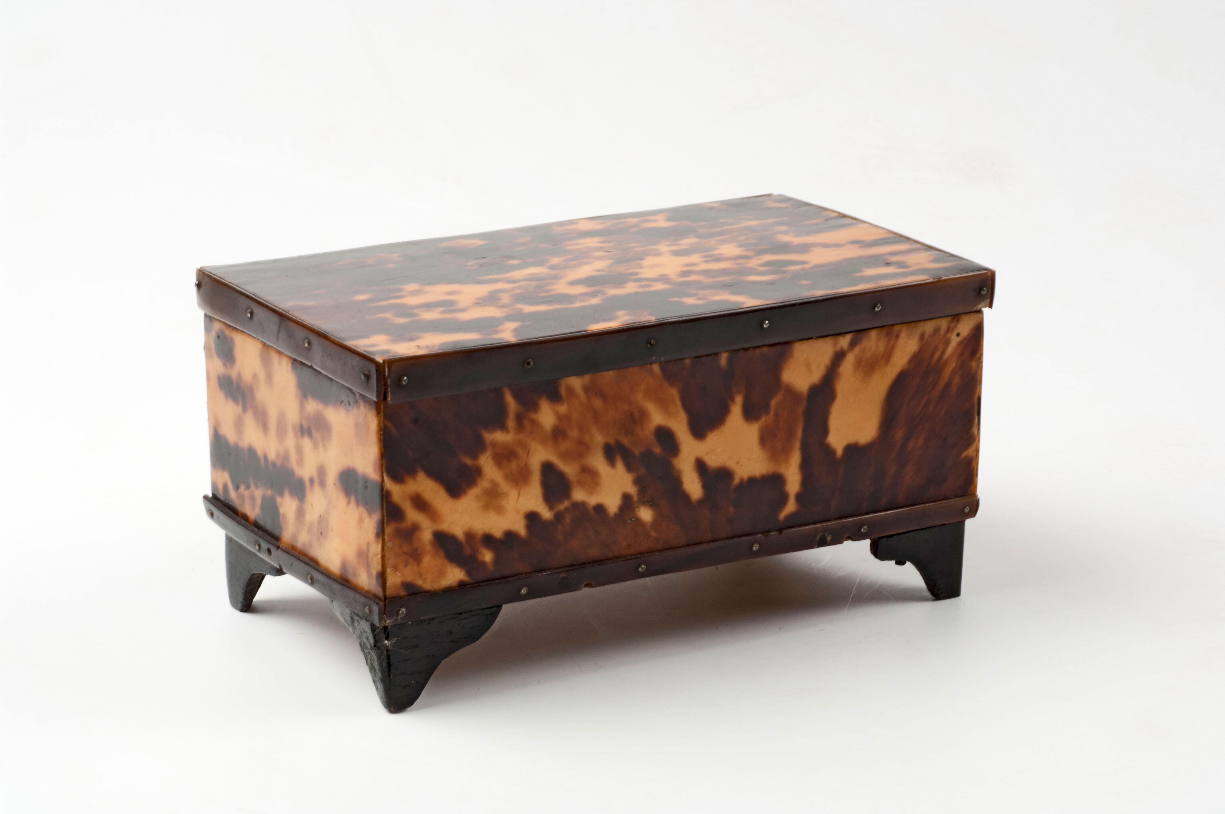 Houten sirihdoos bekleed met schildpad en met zilver...