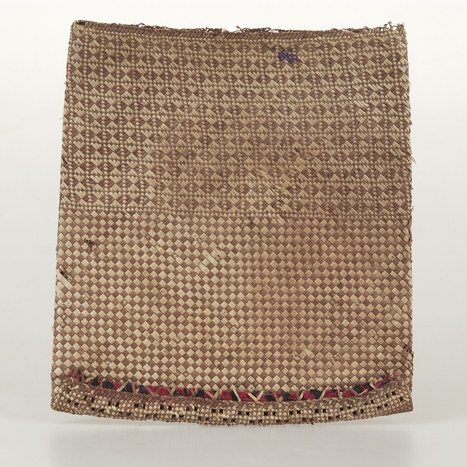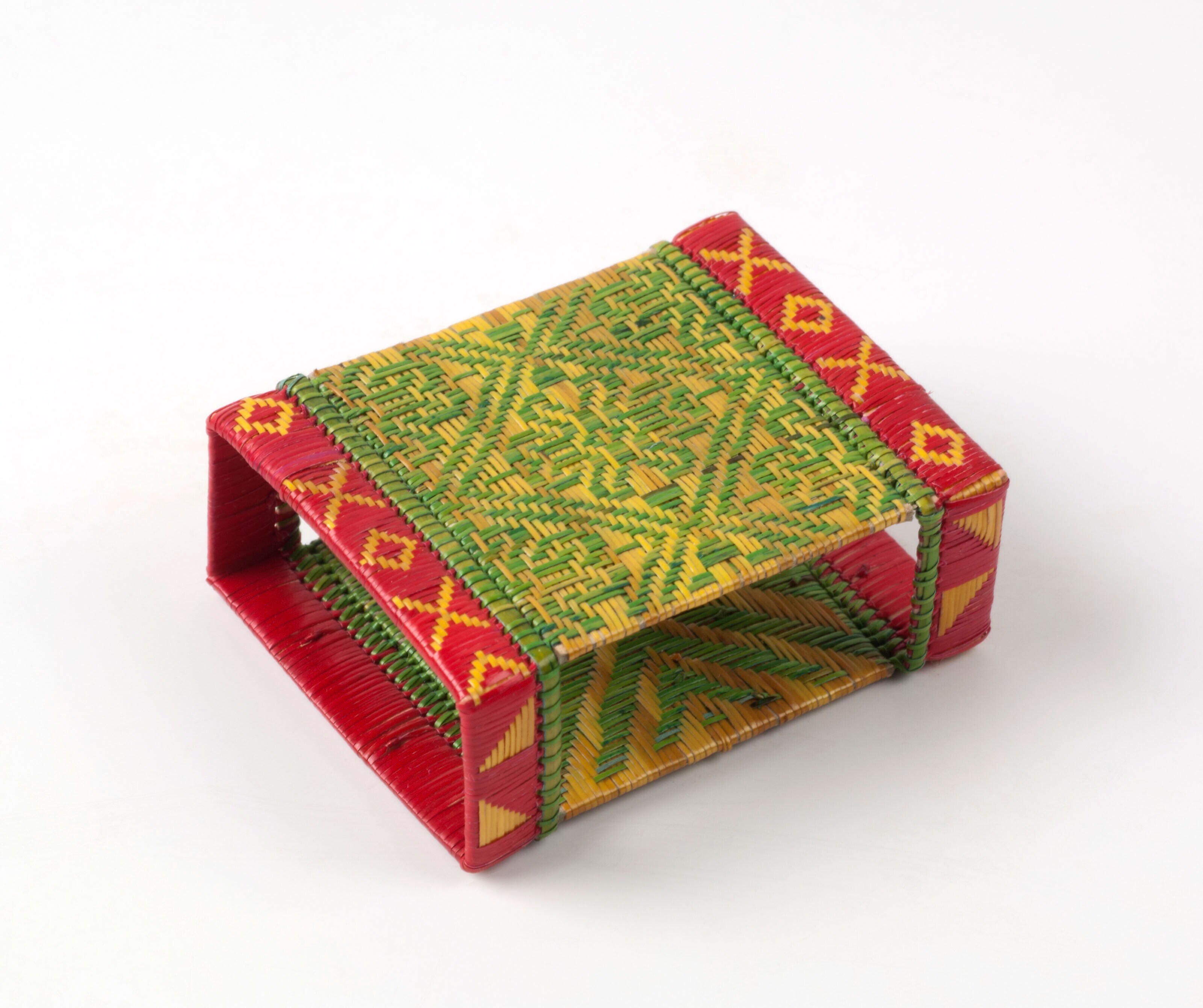 Gevlochten zak van plantaardige vezel met daarop bes...