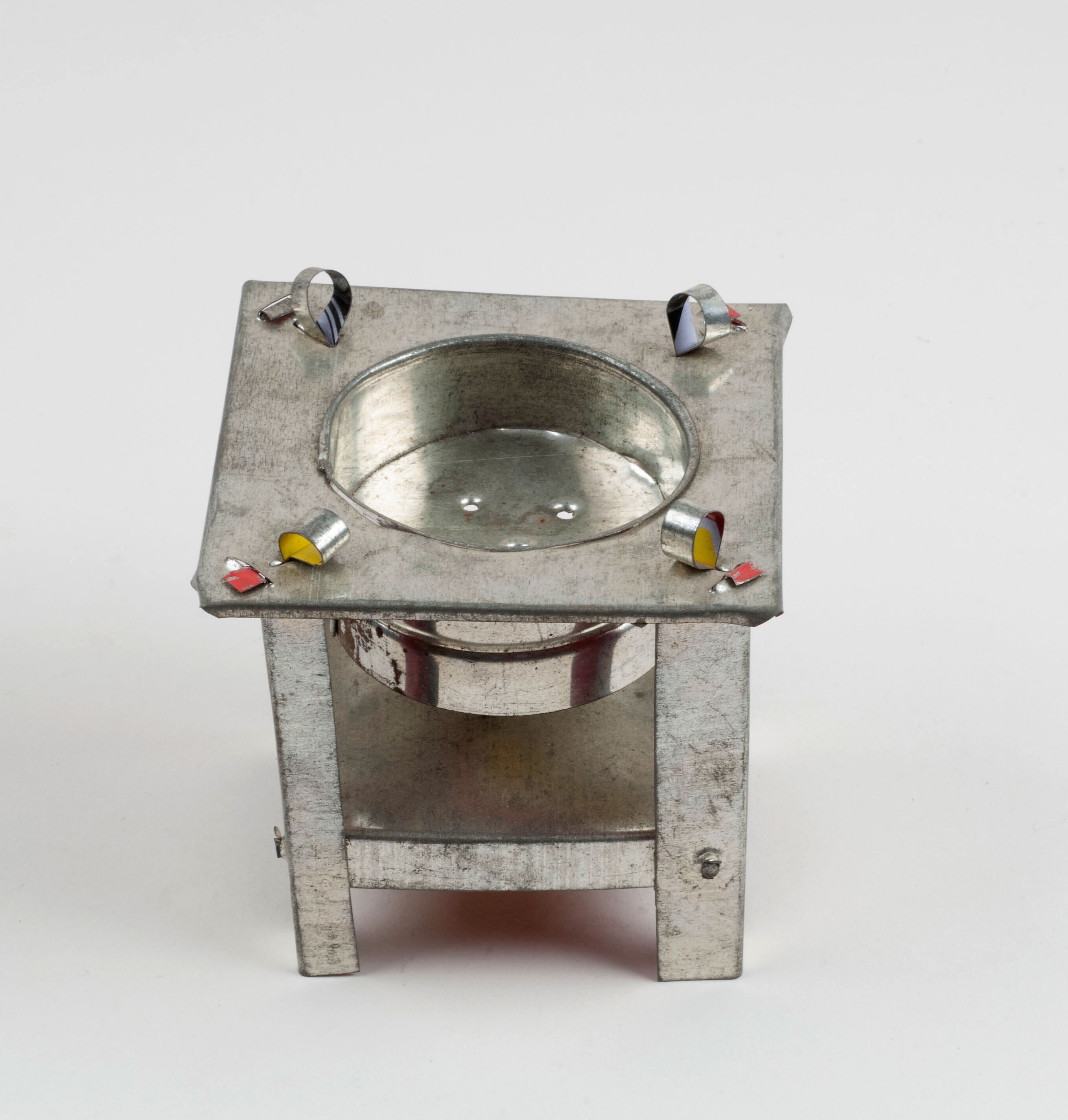 Speelgoed: model van een komfoor met pan