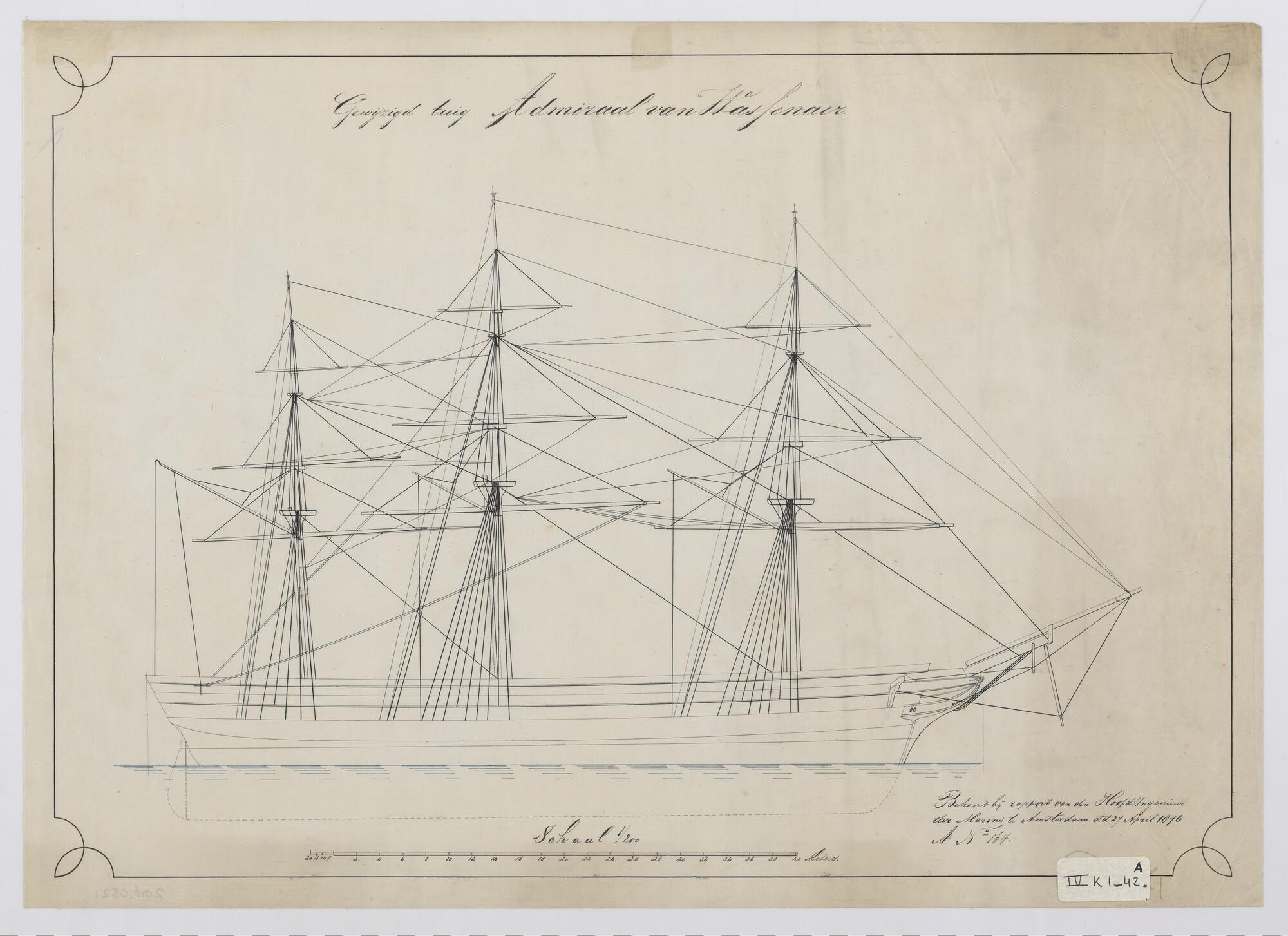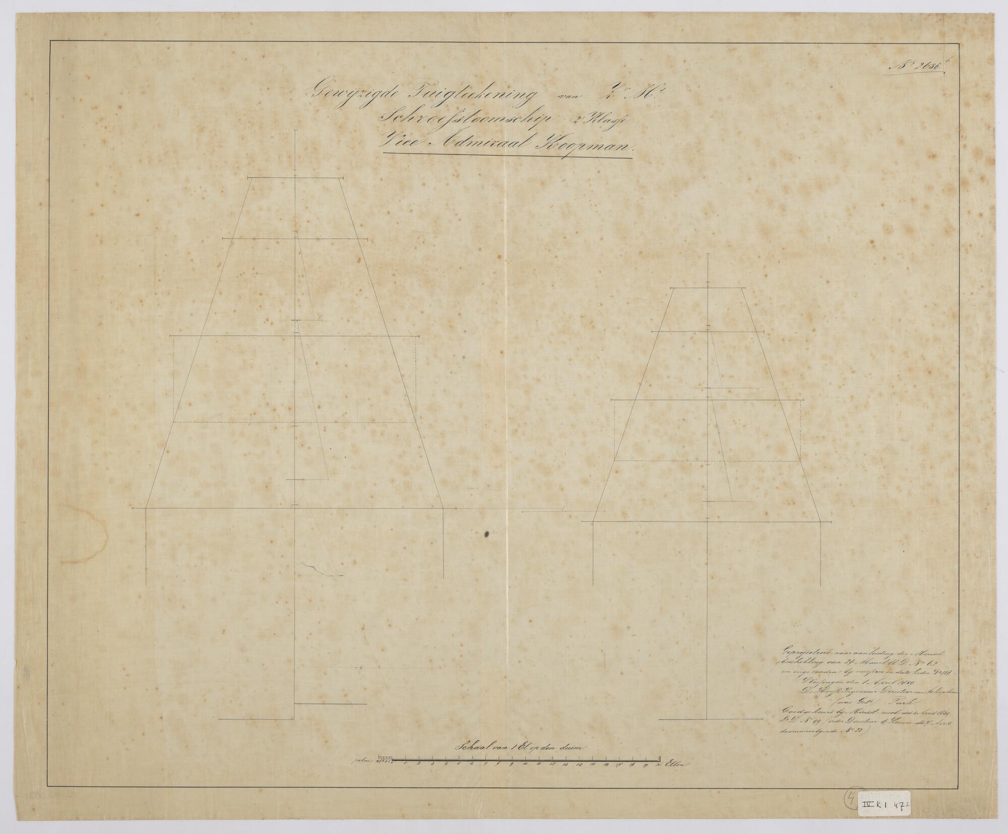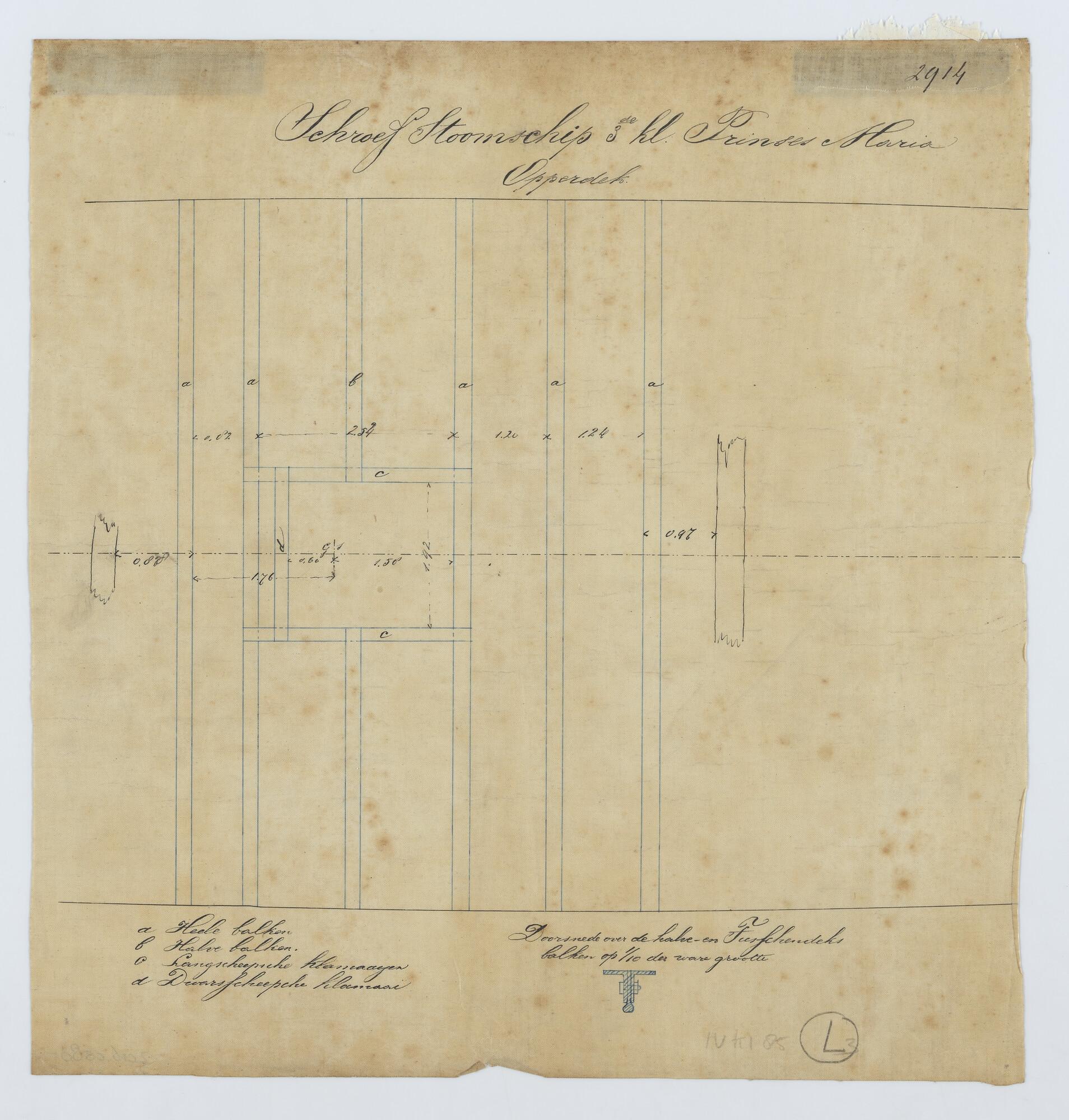 Lijnenplan van een dekaak met stoomvermogen