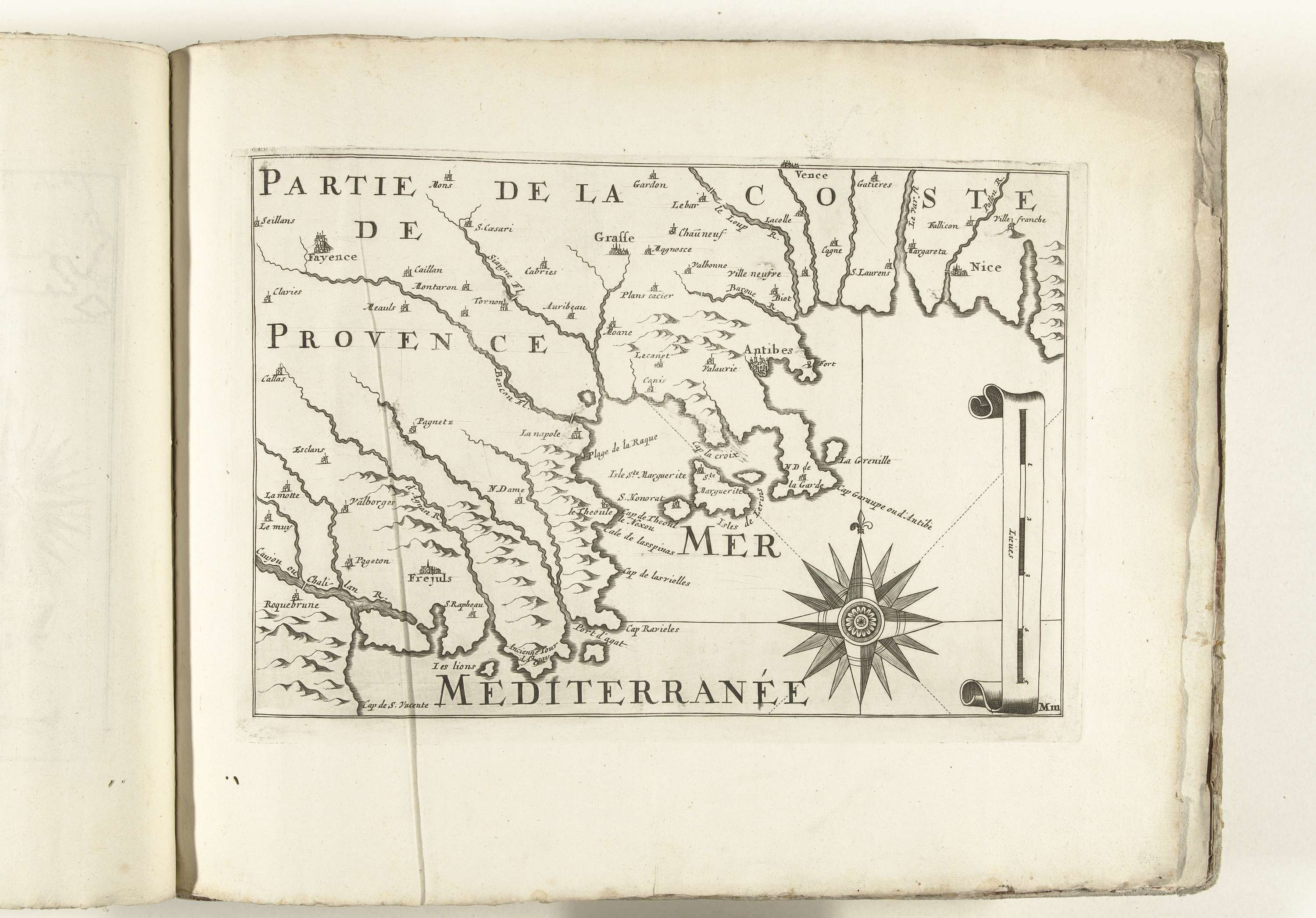 Kaart van de Franse zuidkust bij Antibes, ca. 1702