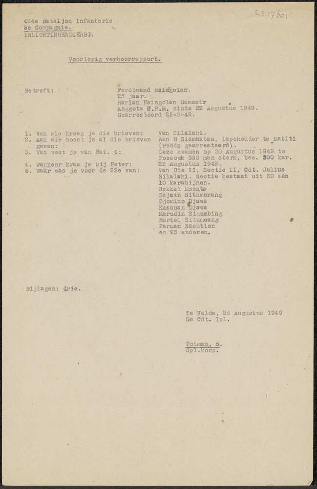 Voorlopig verhoorrapport van Comm. Inl. S. Potman be...