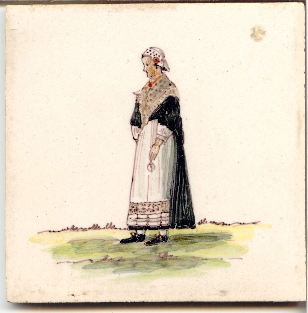 Tegel van keramiek met tinglazuur, voorstellende: wa...