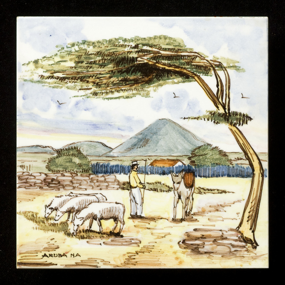 Tegel van keramiek in onderglazuur, voorstellende: l...