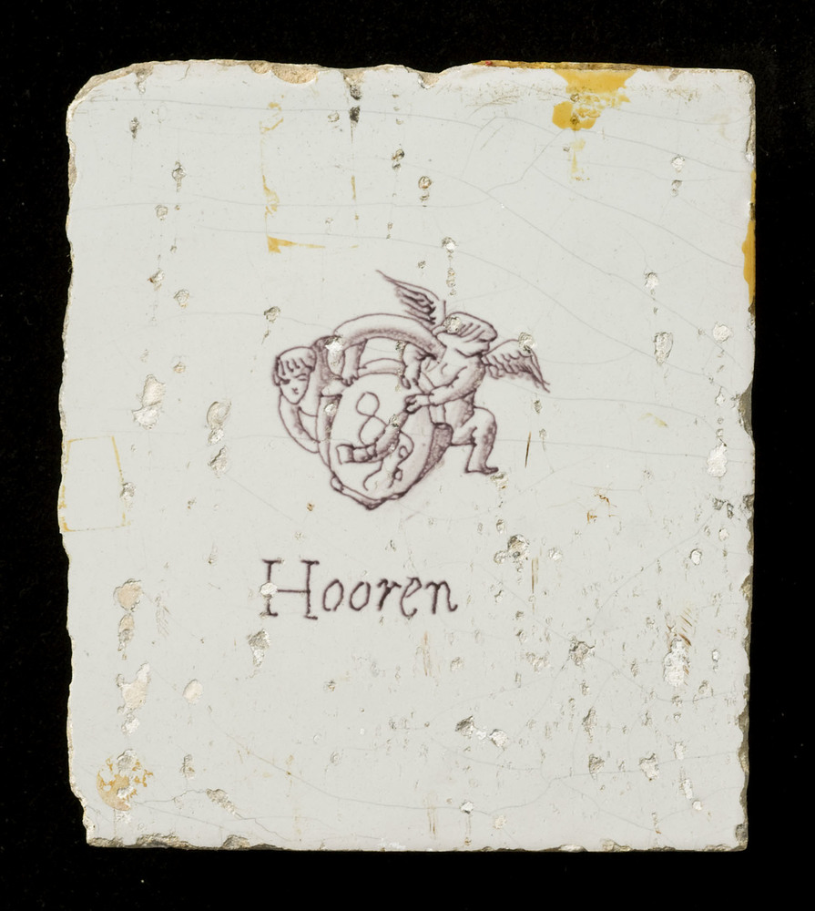 tegel van aardewerk met tinglazuur, voorstellende: h...