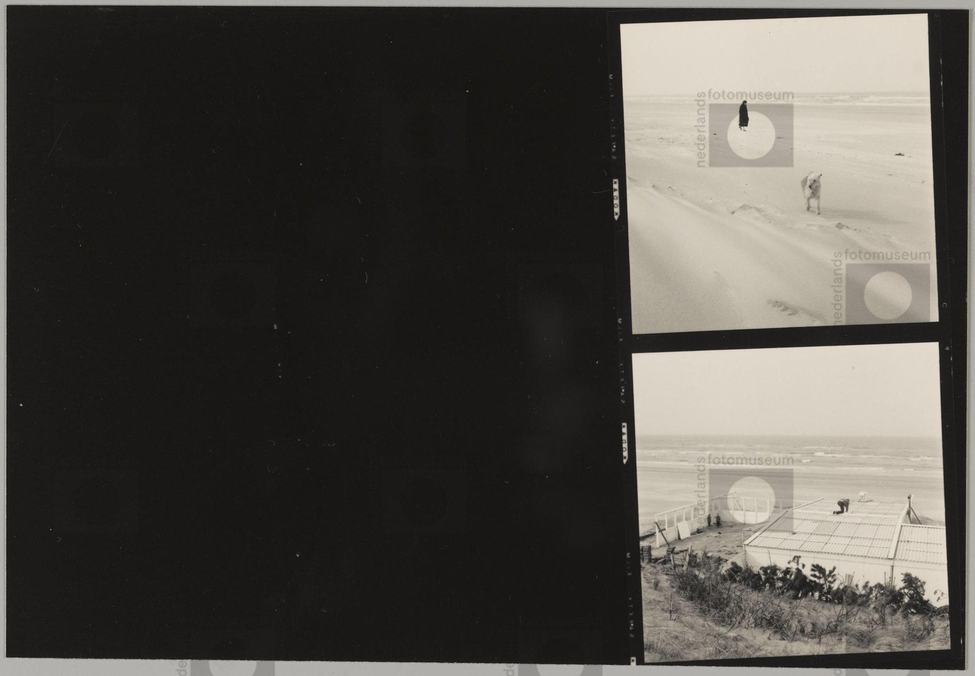 Wandelaar op het strand, opbouwen paviljoen, Bloemen...