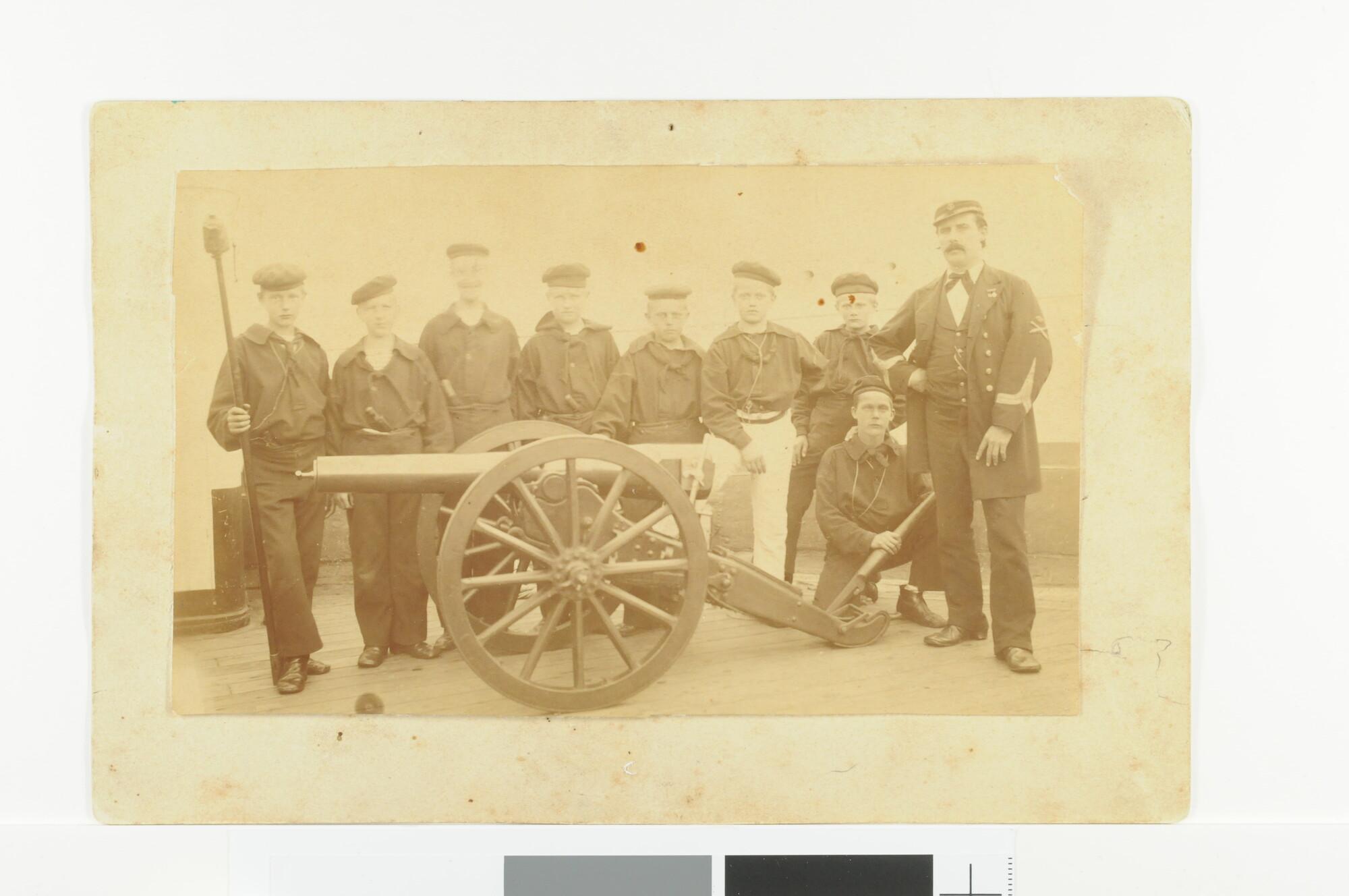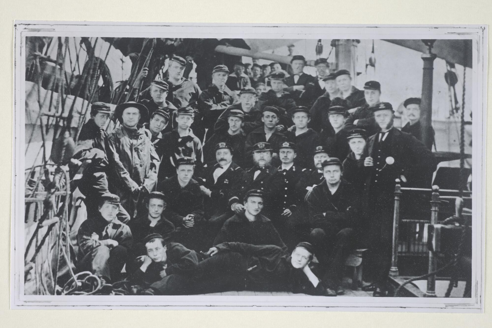 Portretfoto van de état-major van Hr.Ms. 'Urania', w...