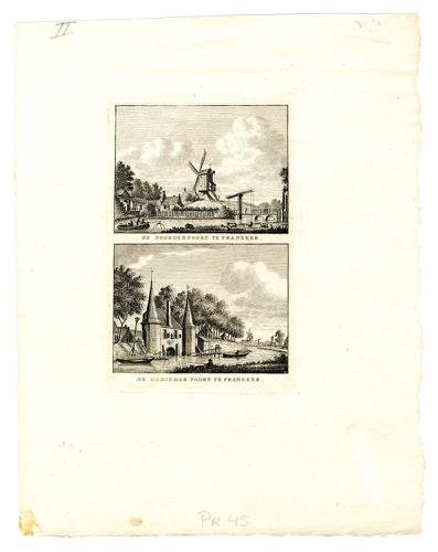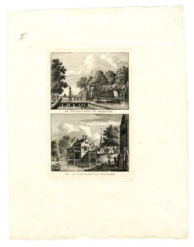 Twee gravures van de Ooster-en Westerpoort in Franeker