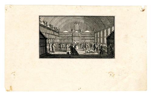 Gravure van de bibliotheek van de Hoogeschool in Fra...
