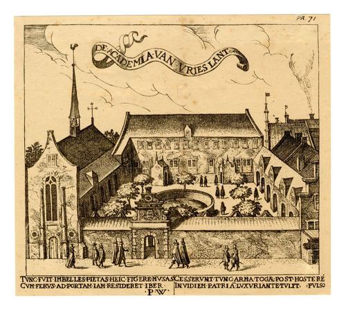 Gravure van de Hoogeschool in Franeker