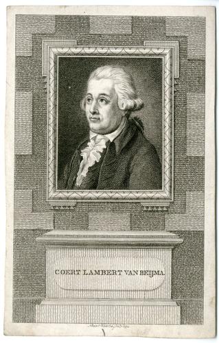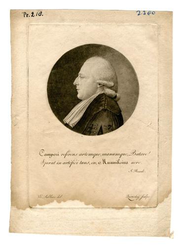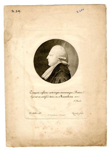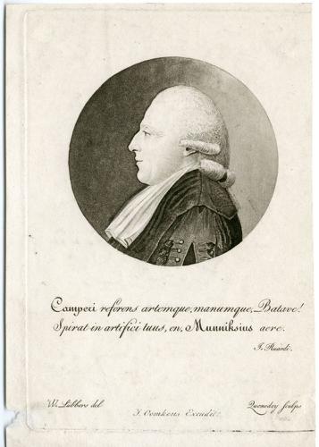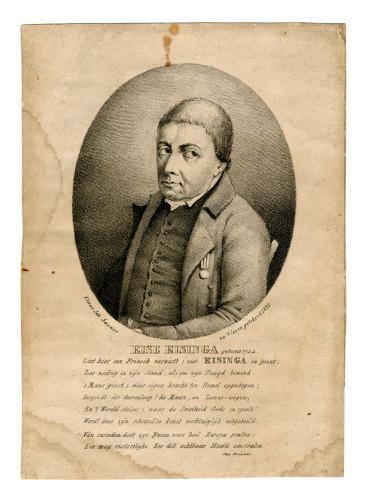 Gravure met een portret van Eise Eisinga door Klaas ...