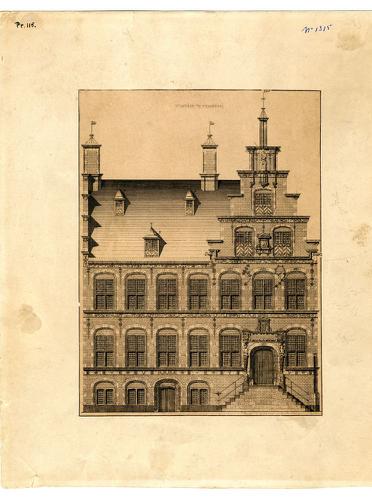 Gravure van de gevel van het stadhuis