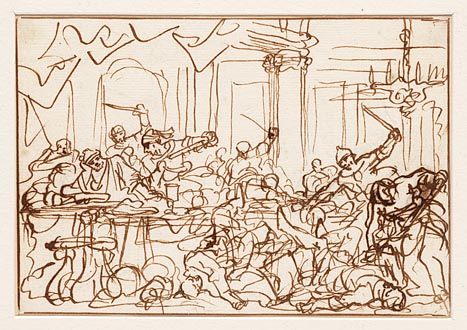 Eglon in zijn paleis doorstoken door Ehud