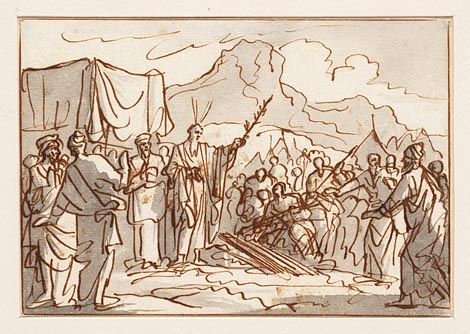 Korach en zijn 250 volgelingen voor het altaar door ...