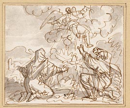 Nadab en Abihu voor het altaar door een hemels vuur ...